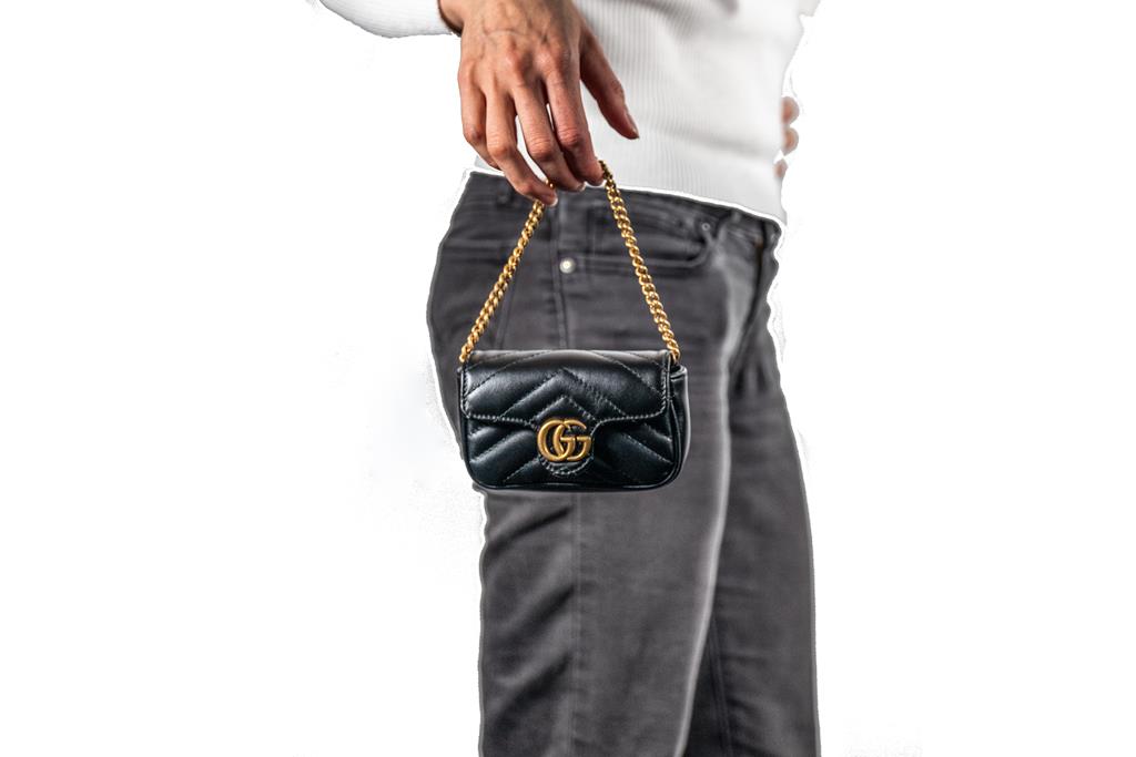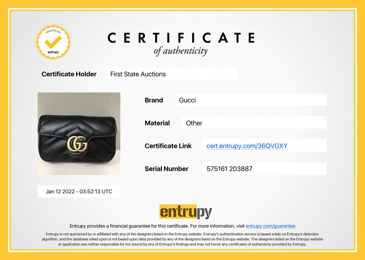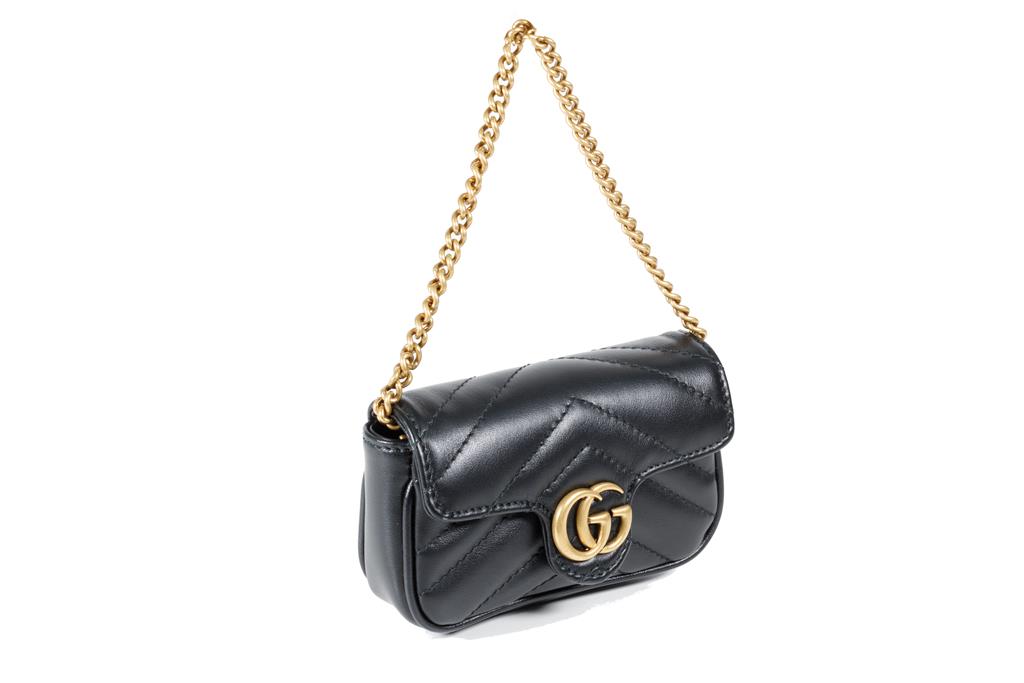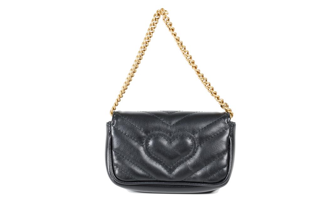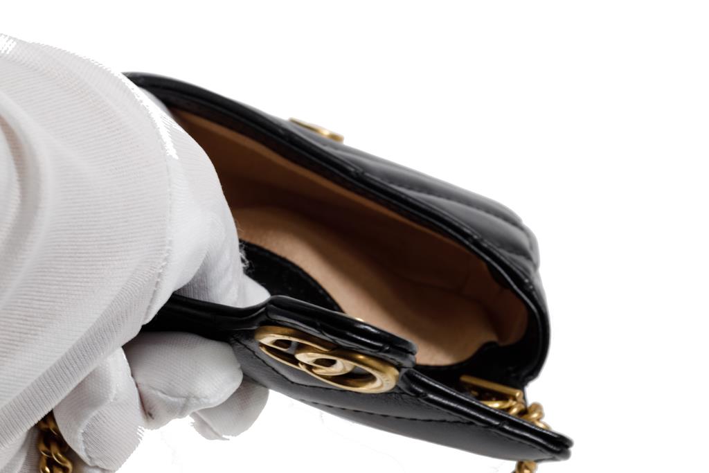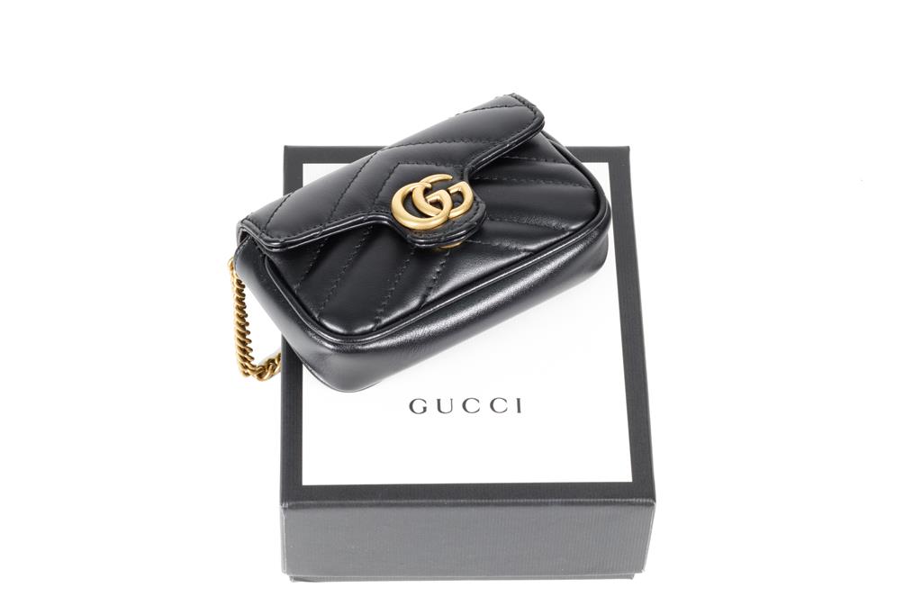 Gucci GG Marmont Leather Chain Coin Purse. Featuring gold-tone hardware, single interior pocket, and magnetic closure. Approximate dimensions: 12cm (L) x 7.5cm (H) x 3cm (D) and 10cm chain shoulder strap drop. Made in Italy. Accompanied by Gucci box and dust bag. With Entrupy Certificate of Authenticity. (Pre-owned)