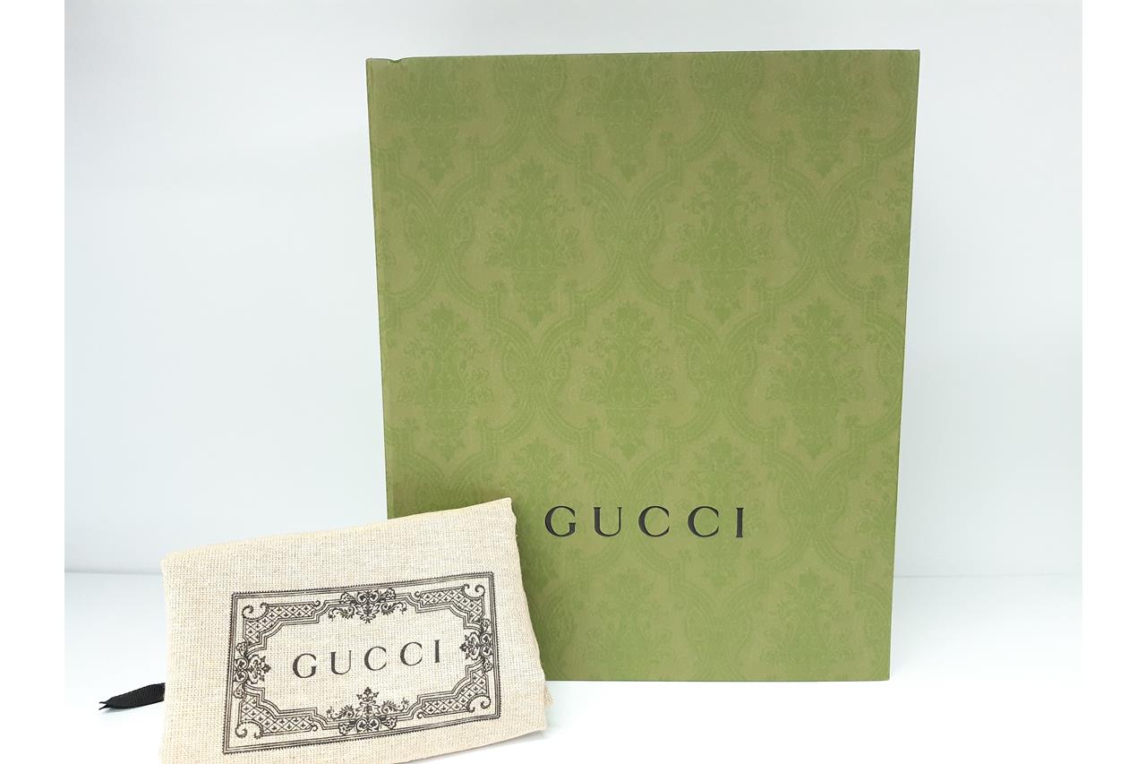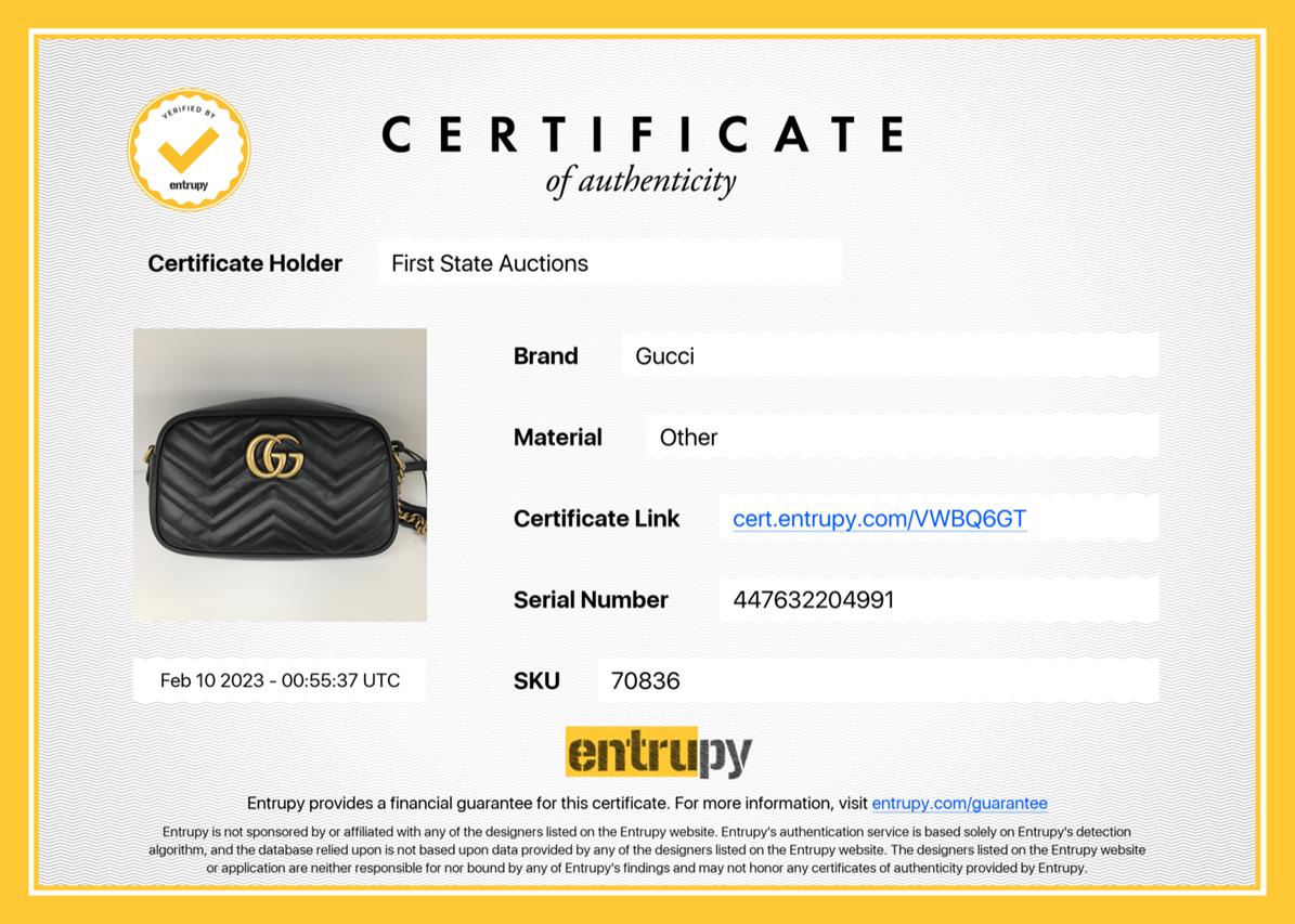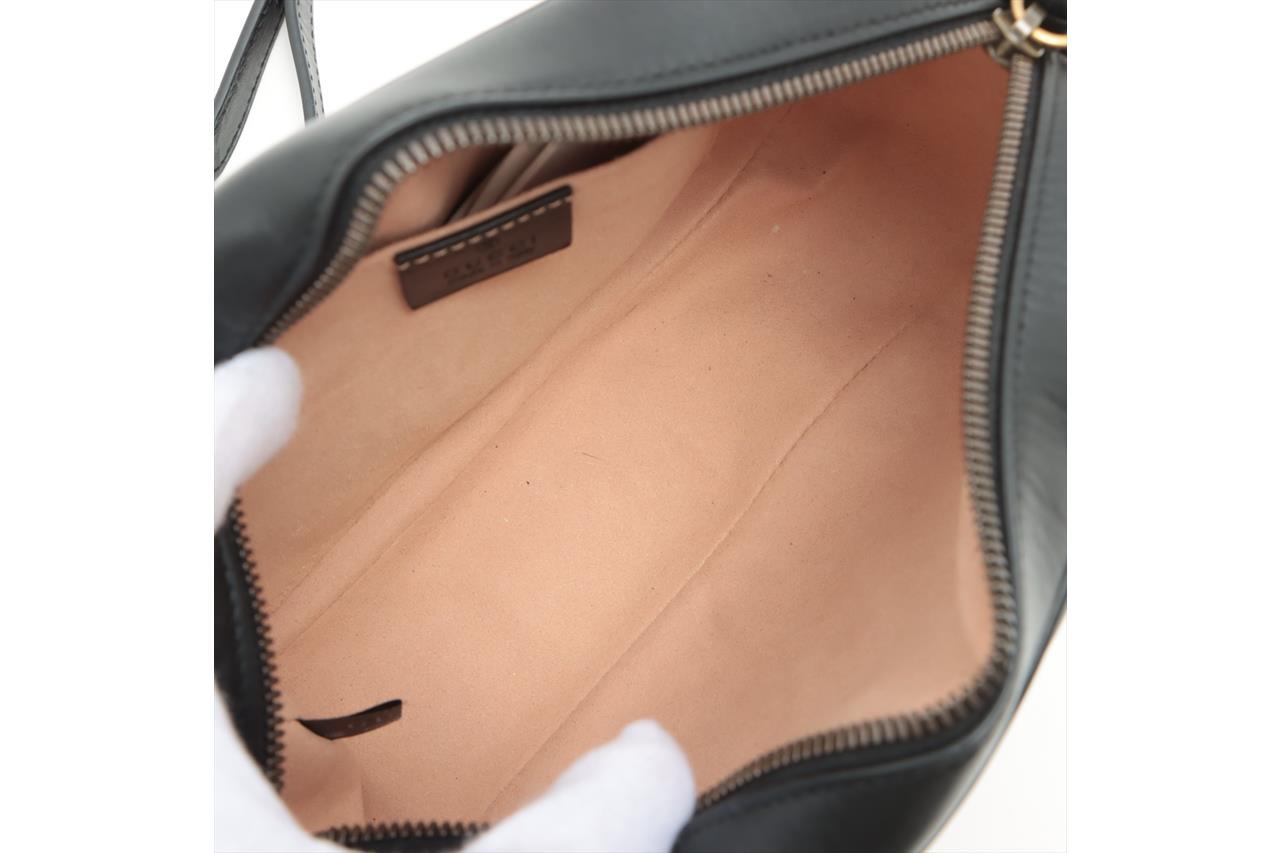 Gucci small GG Marmont chain shoulder bag in black matelasse chevron leather with GG patern on the back. Antique gold-toned hardware, zip top closure. It opens to beige microfiber lined interior with a patch pocket. Approximate dimensions: 24cm(L) x 14cm(H) 7cm(D), 56cm(min) adjustable shoulder strap drop height. Accompanied by Gucci booklets, dust bag and box. With Entrupy Certificate of Authenticity. (Pre-owned)