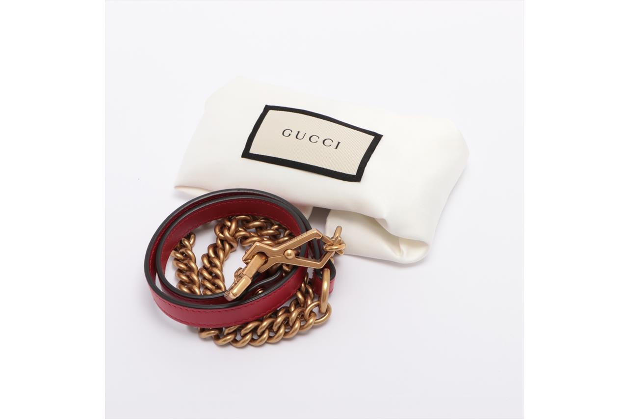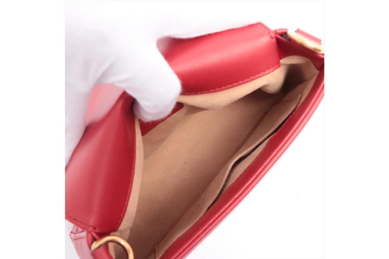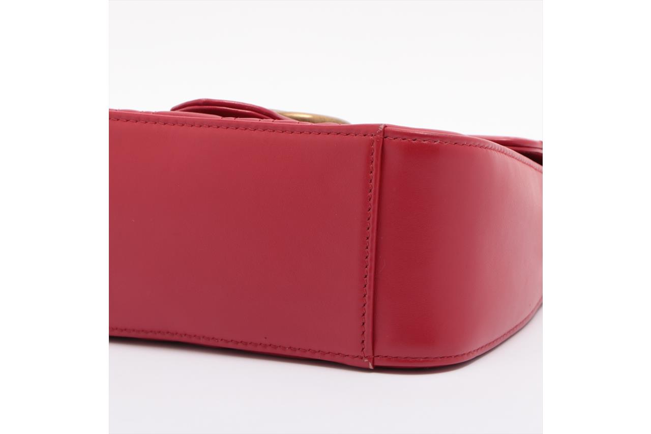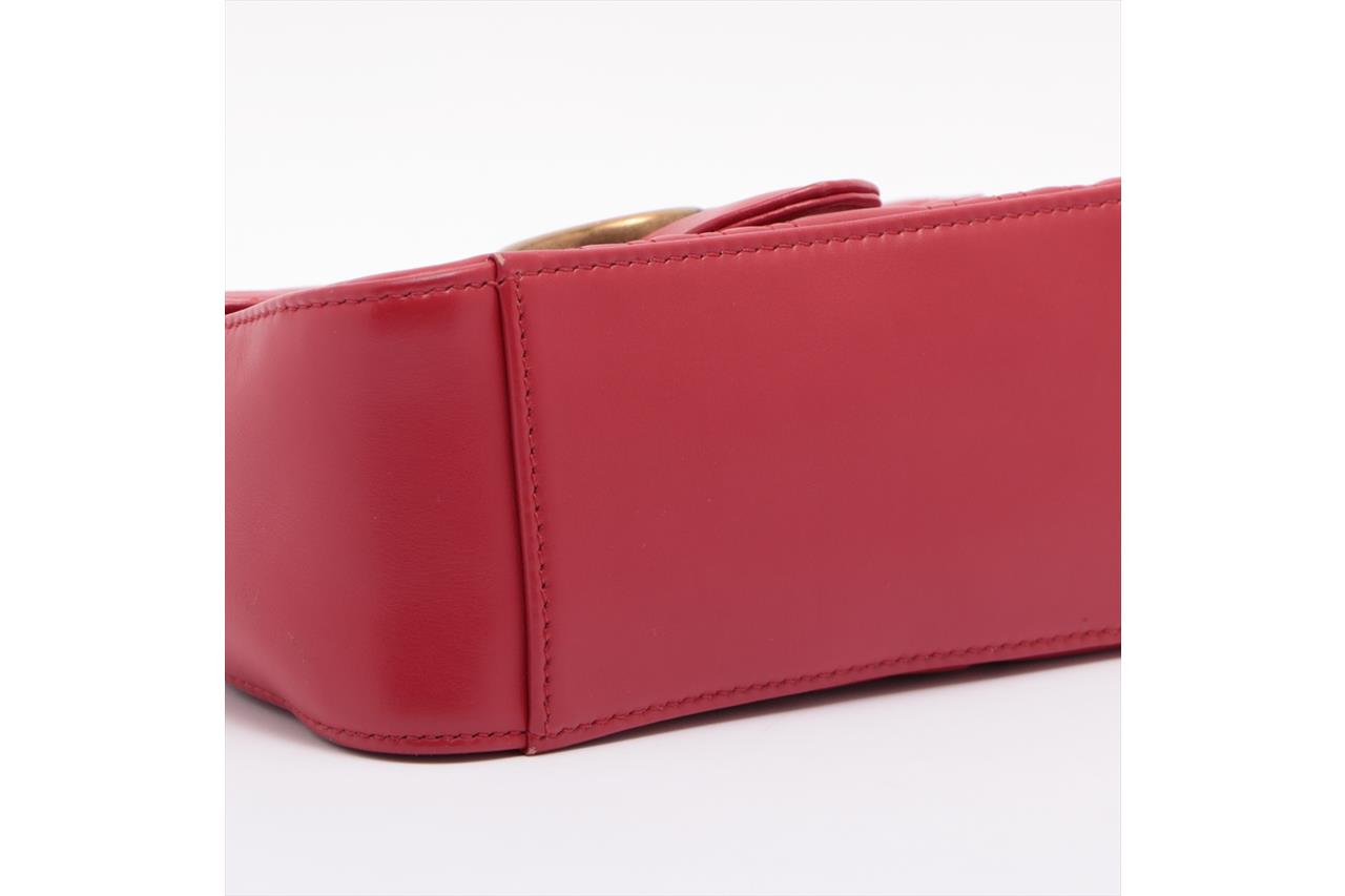 Gucci GG Marmont Top Handle Bag. Antique gold-tone hardware. Red leather with matelassé effect. Single top handle & fold over top with magnetic fastening. Approximate dimensions: 21cm (L) x 15.5cm (H) x 8cm (D). Made in Italy. With Gucci dust bag, detachable strap and Entrupy Certificate of Authenticity. (Pre-owned)