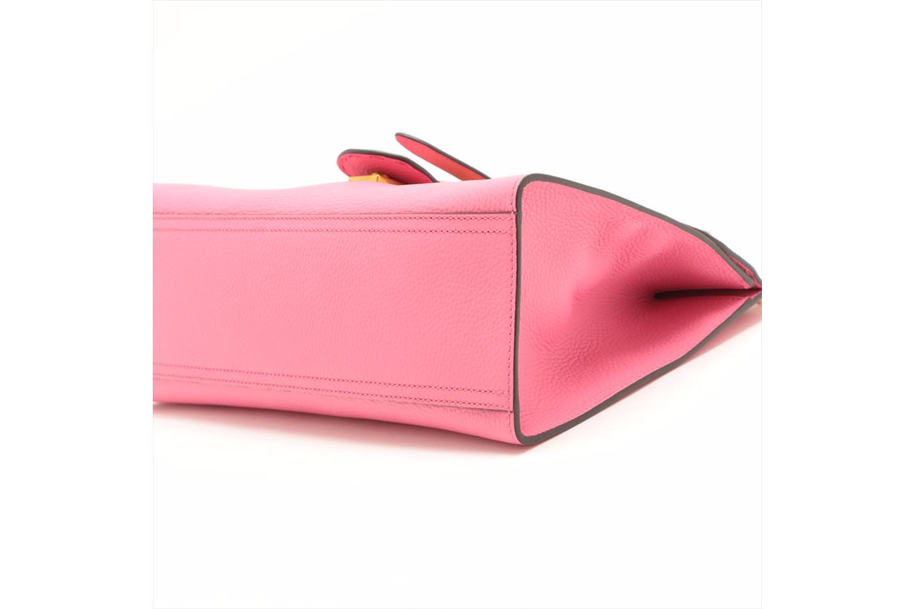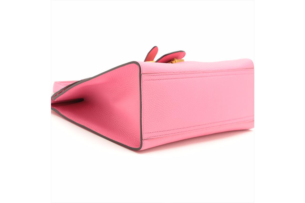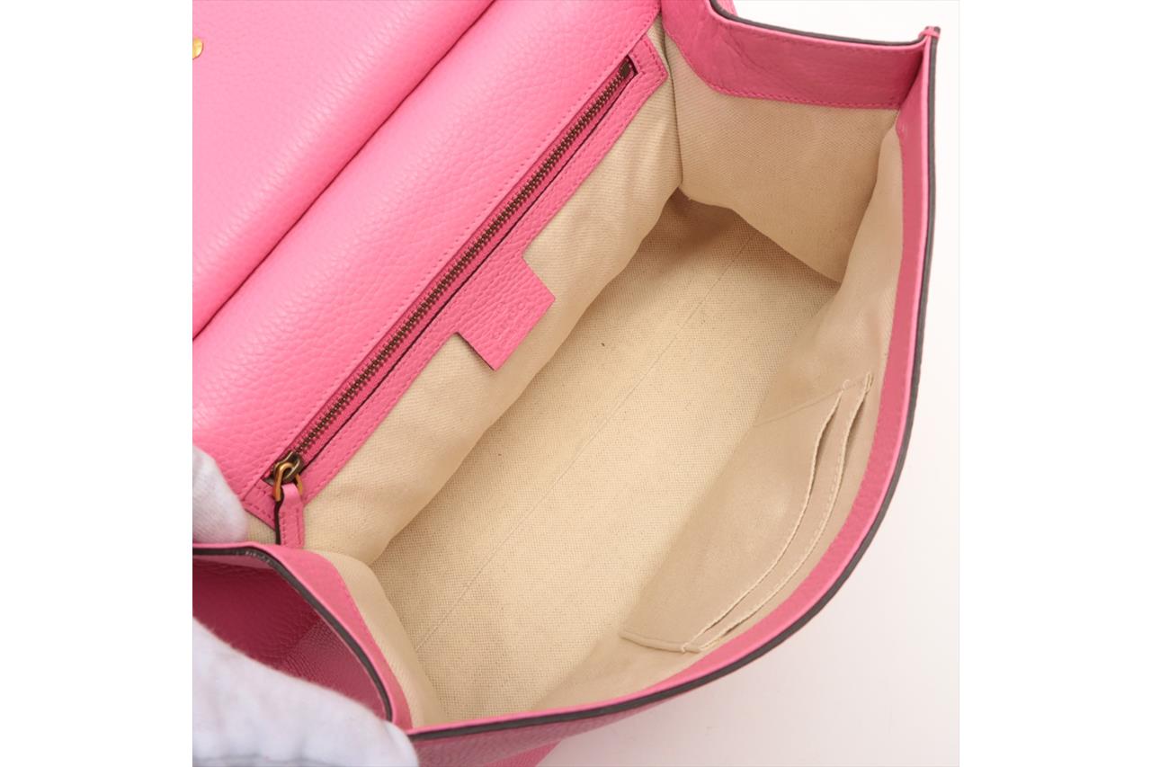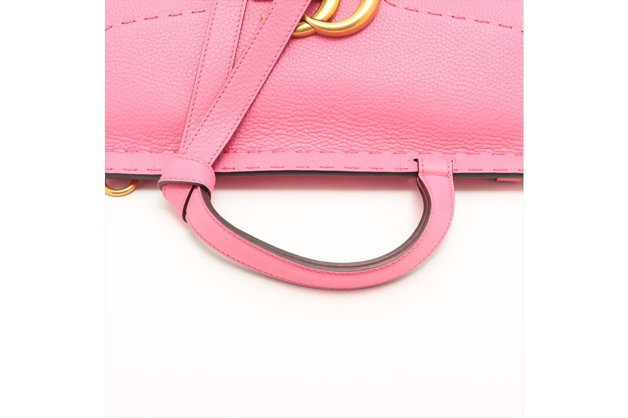 Gucci GG Marmont Top Handle in Pink Leather. Brushed gold-tone hardware. Featuring a flat leather top handle, flat top with GG logo, push lock closure and a neutral fabric interior with zip and slip pockets. Approximate dimensions: 32cm (L) x 22cm (H) x 12.5cm (D) and 8.5cm handle height. With Entrupy Certificate of Authenticity. (Pre-owned)