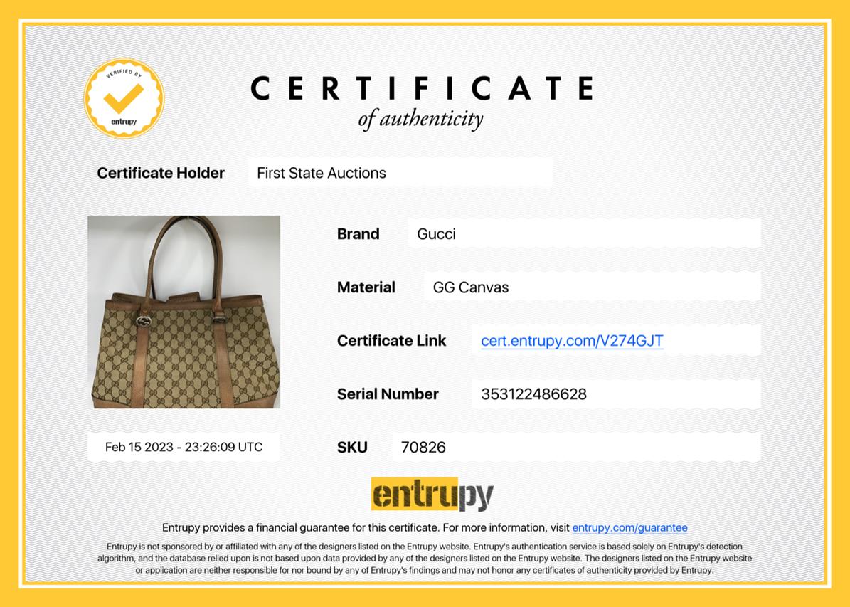 Gucci Miss GG tote bag in GG Monogram coated canvas. Featuring silver-toned hardware, brown leather trim and handles, open top with magnetic closure. The top opens to an ivory canvas interior with zipper and patch pockets. Approximate dimensions: 36cm(L) x 24cm(H) x 14cm(D), 21cm handle drop. Accompanied by Gucci shop card (dated 02/01/2016), booklets, dust bag. With Entrupy Certificate of Authenticity. (Pre-owned)