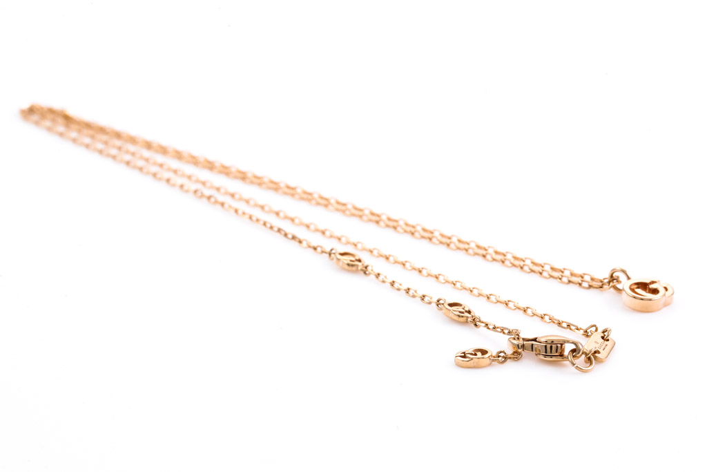 Gucci GG running necklace. 18ct rose gold with Gucci adjustable max 42cm chain. Made in Italy. Weight: 3.2g. With Gucci box. (Pre-owned)