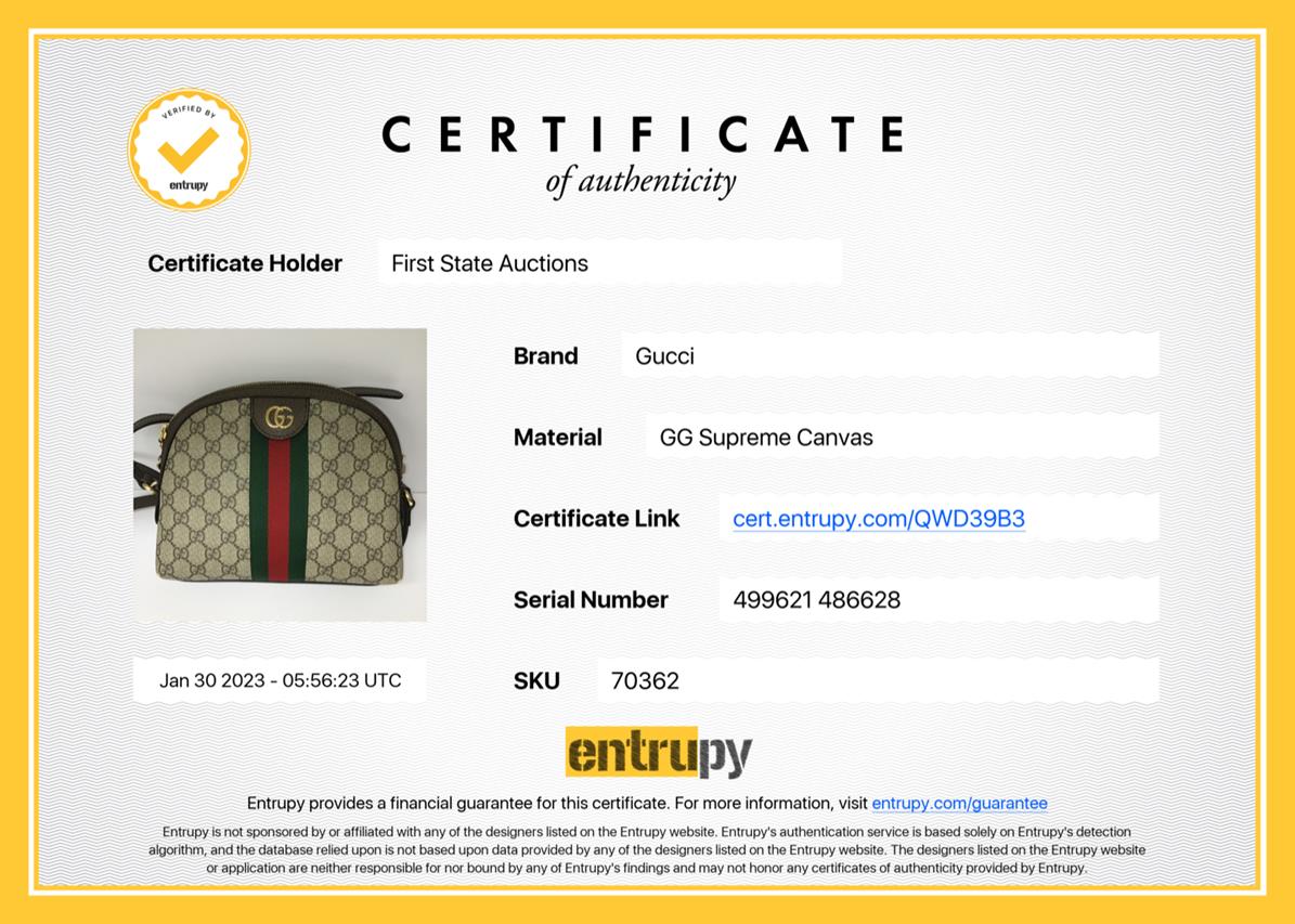Gucci GG Ophidia shoulder bag in Beige GG Supreme canvas. Featuring gold-tone hardware, brown leather trim, GG logo at the front, double zippers closure and zippers with GG charms. It opens to blue satin interior with patch pockets. Approximate dimensions: 23.5cm (L) x 19cm (H) x 8cm (D), and 44cm adjustable shoulder strap. Accompanied by Gucci dust bag. With Entrupy Certificate of Authenticity. (Pre-owned)