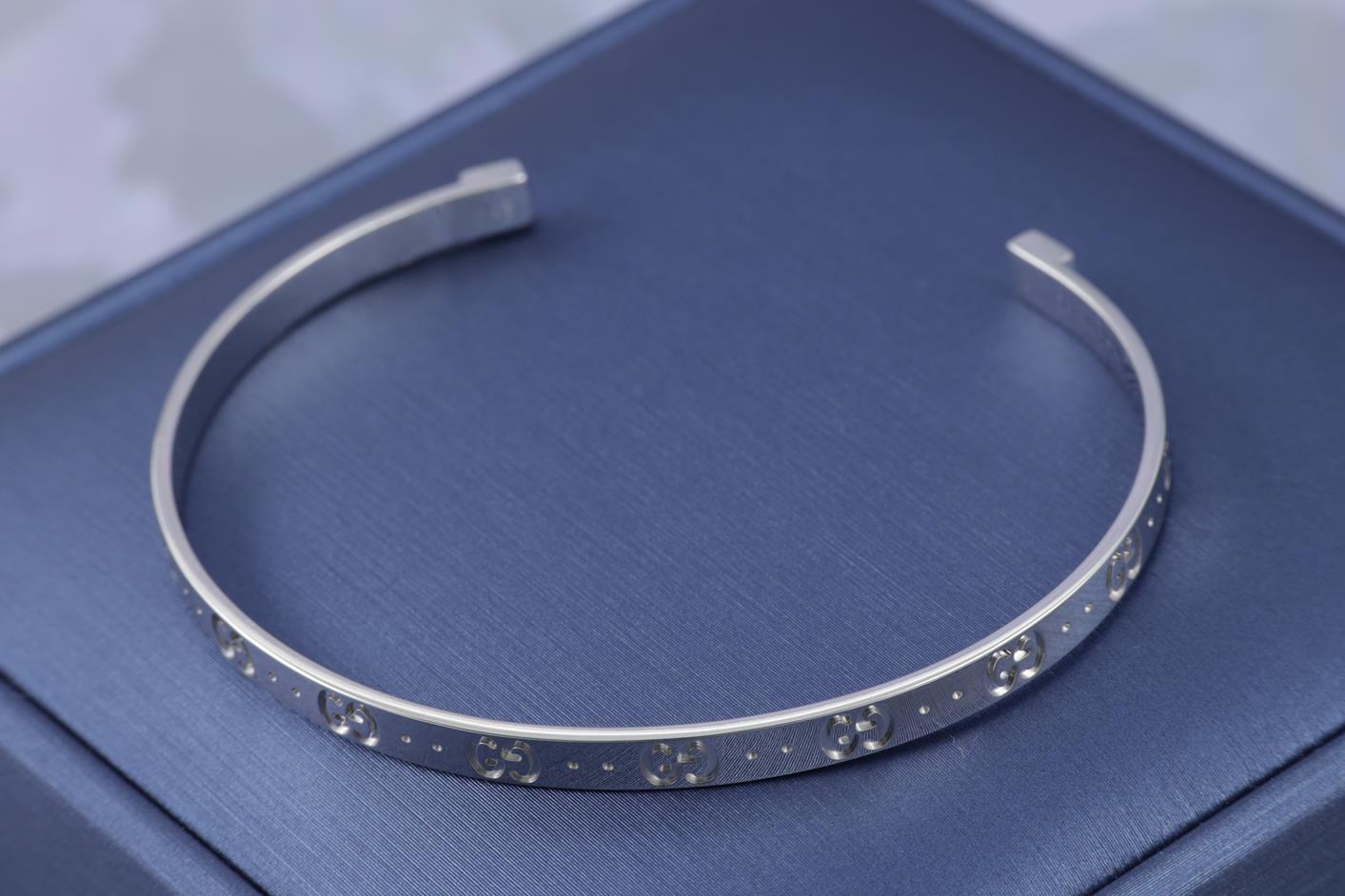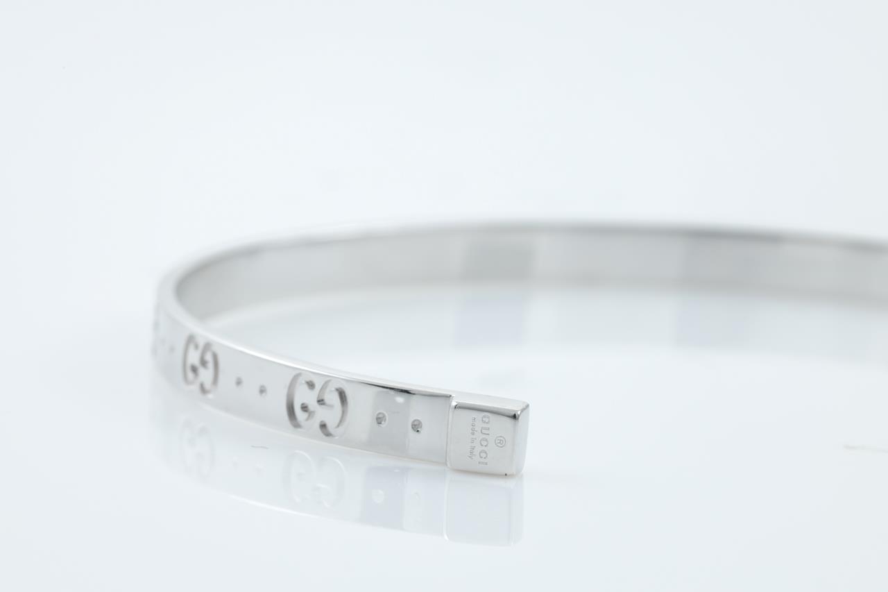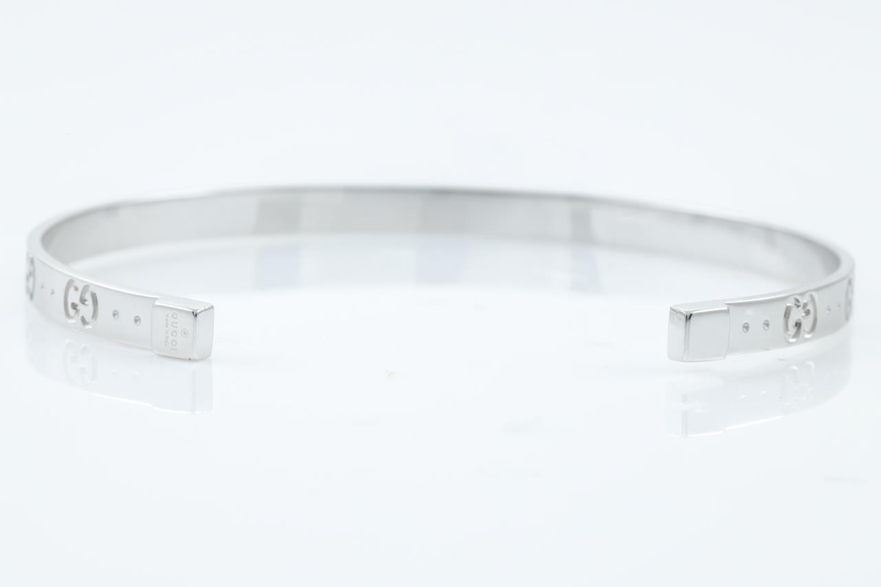Gucci Icon bracelet with Interlocking G logos. 18ct white gold. Circumference: 17cm. Width 4mm. Made in Italy. Weight: 10g. (Pre-owned)