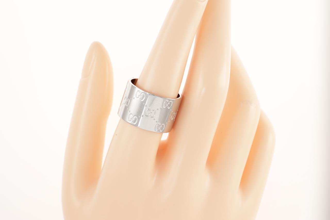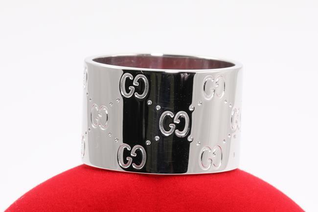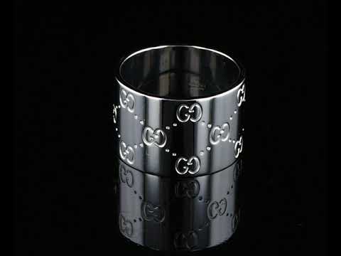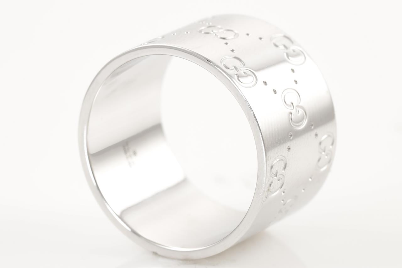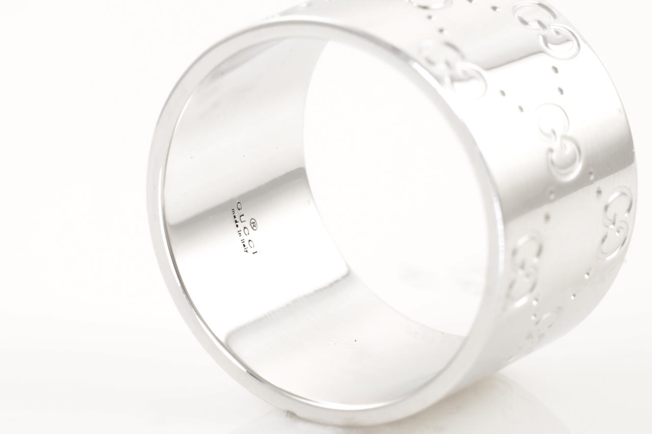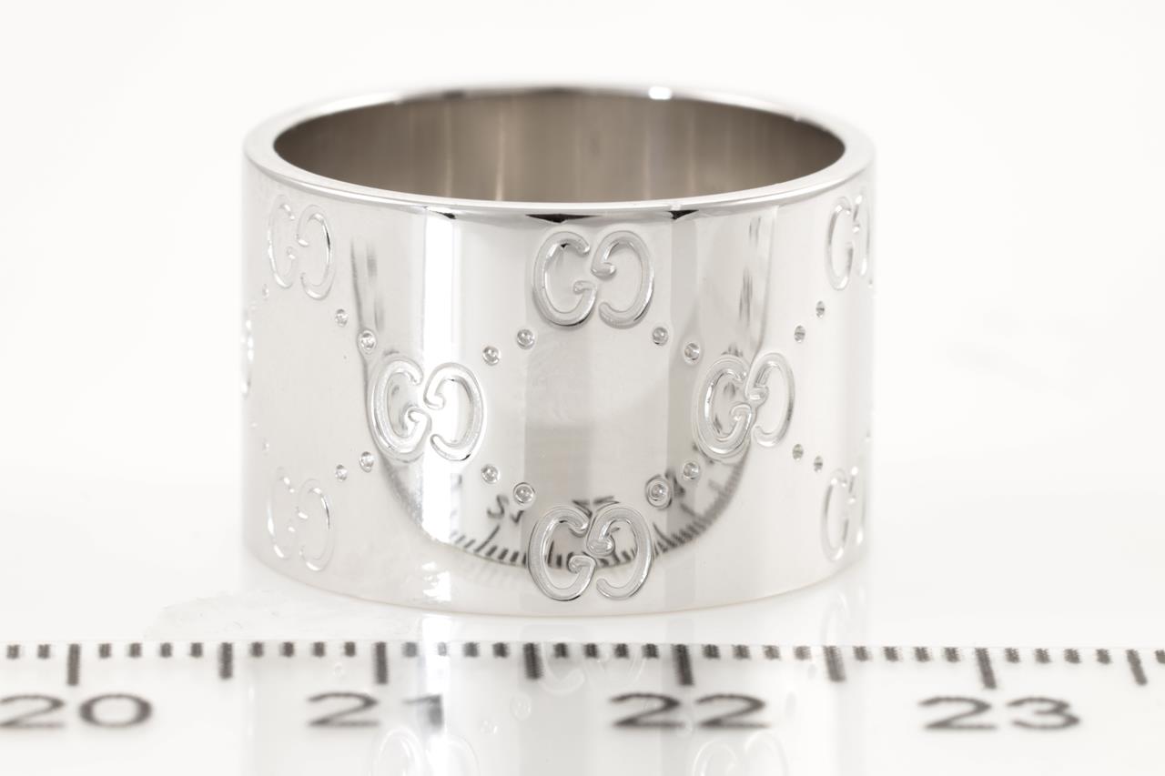 Gucci Icon Monogram wide ring. Made in Italy. 18ct white gold. Gucci stamped size 20, T1/2 - ring resizing is not recommended. Weight: 15.6g. (Pre-owned)