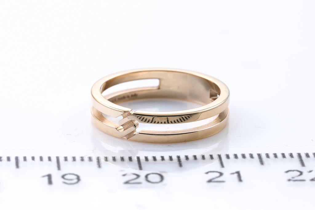 Gucci Infinity ring. 18ct rose gold. Gucci stamped size 8, H1/2 - ring resizing not recommended. Weight: 2.8g. With Gucci box. (Pre-owned).