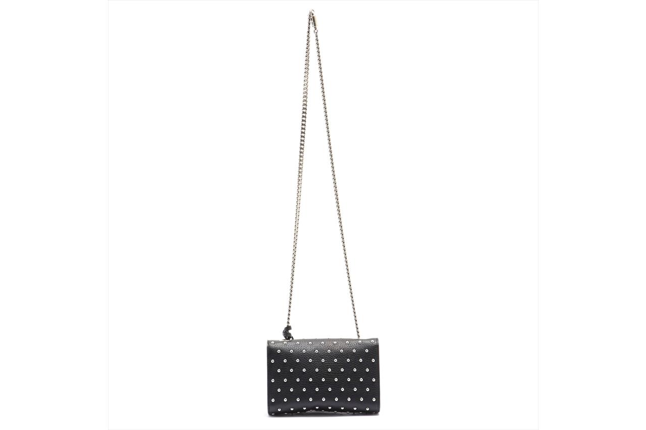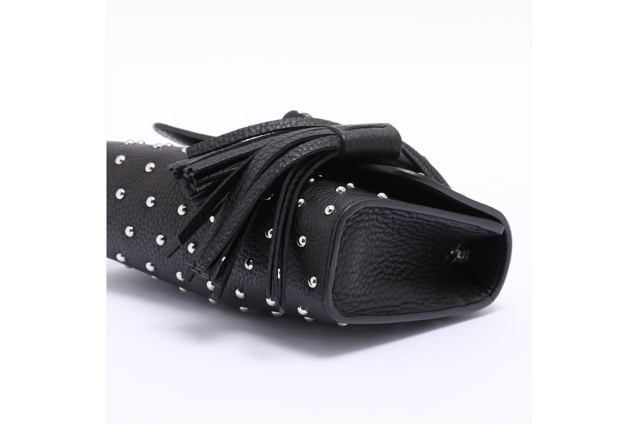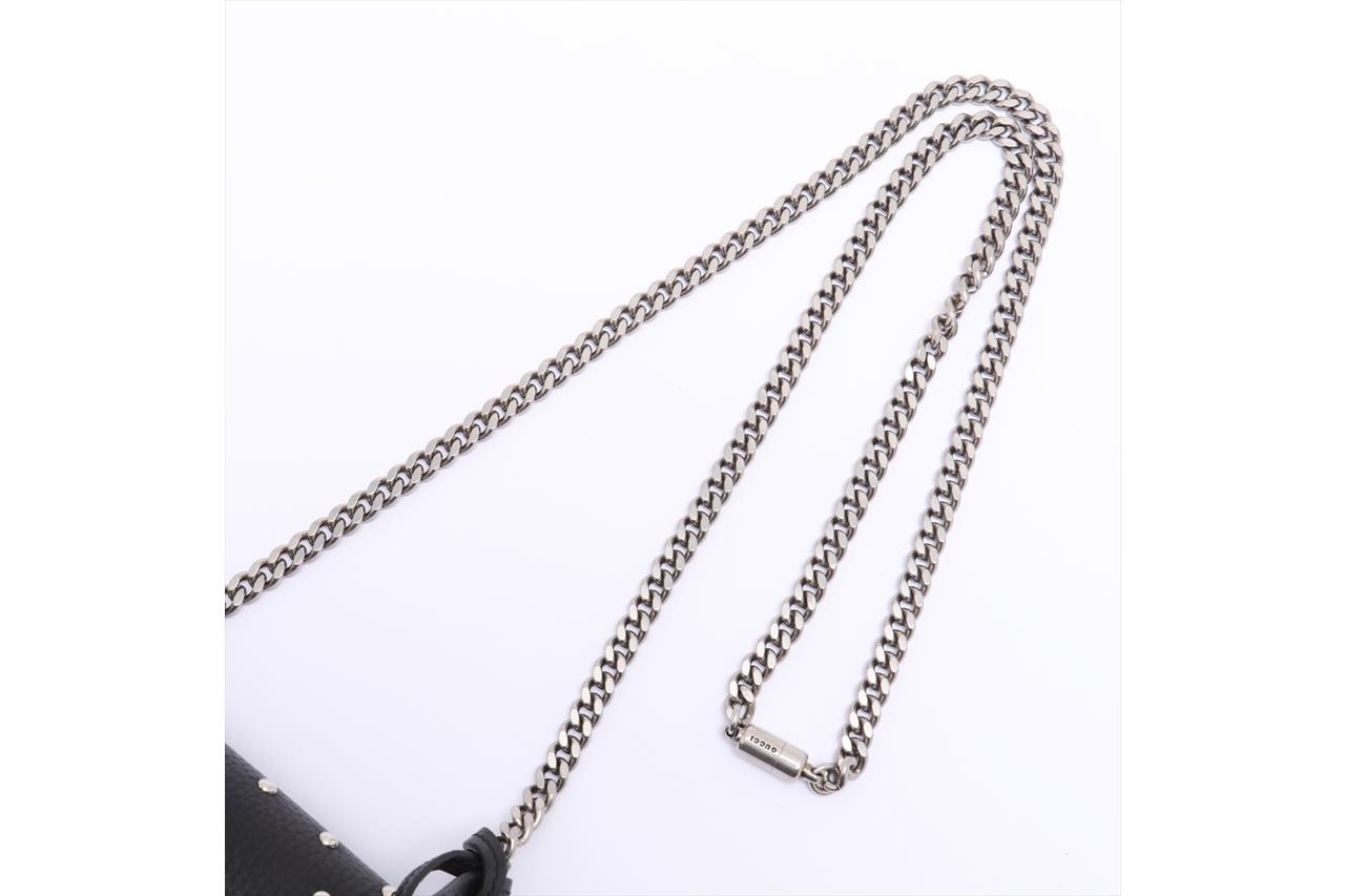 Gucci Miss Bamboo Studs Leather Shoulder Bag. Antiqued silver-tone hardware. Flap closure with dark lacquered bamboo detail and removable leather tassels. Approximate dimensions: 18cm (L) x 12cm (H) x 5cm (D). Diamond-effect chain strap with 51cm drop. Made in Italy. With Gucci dust bag and Entrupy Certificate of Authenticity (Pre-owned).