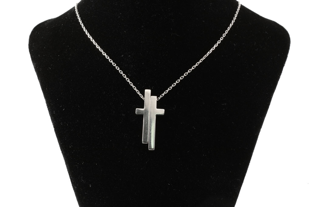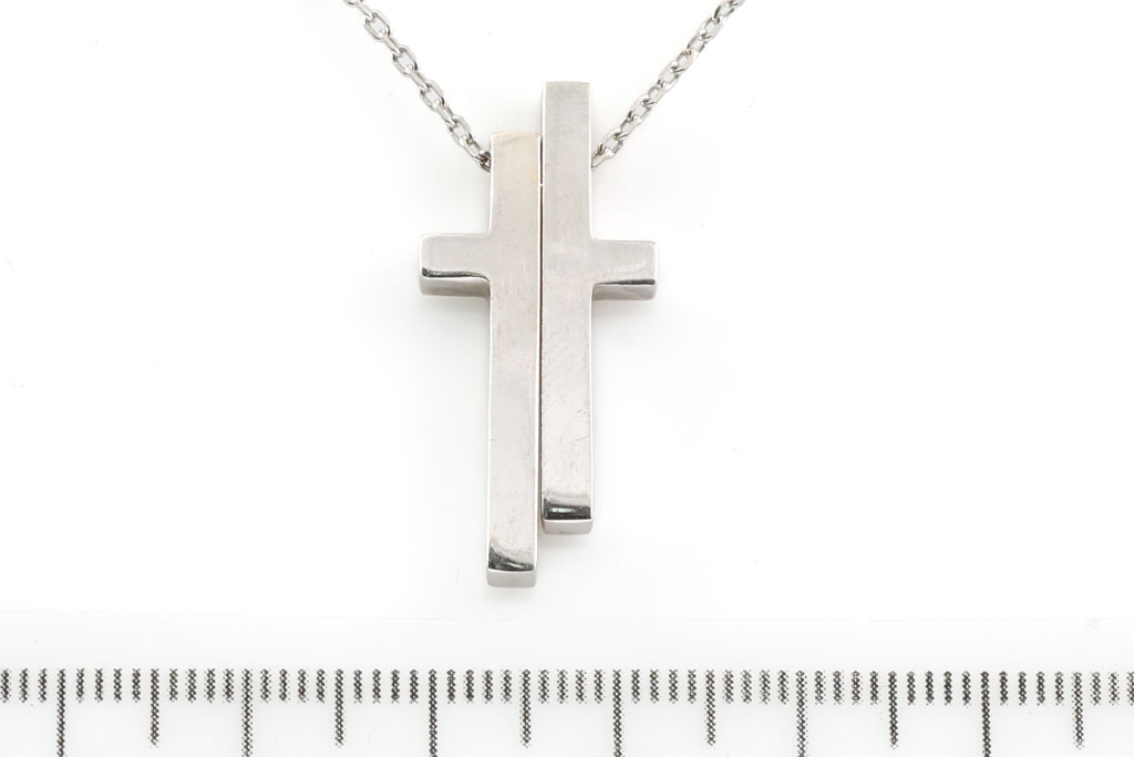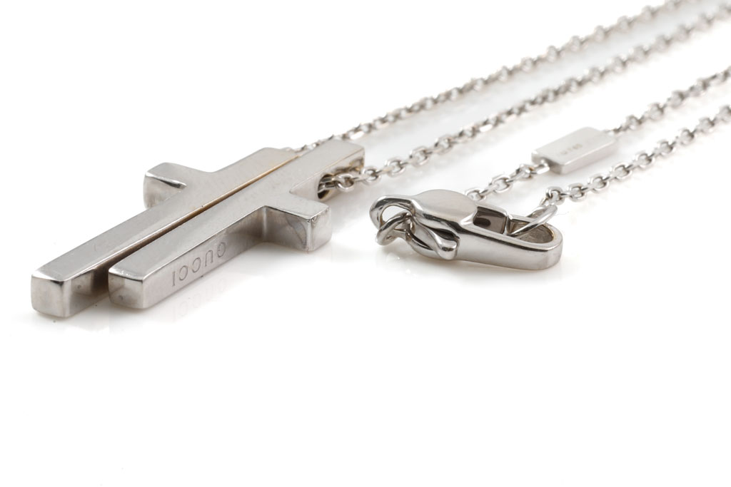 Gucci Separate Cross pendant. 18ct white gold with 47.5cm chain. Weight: 10g. (Pre-owned)