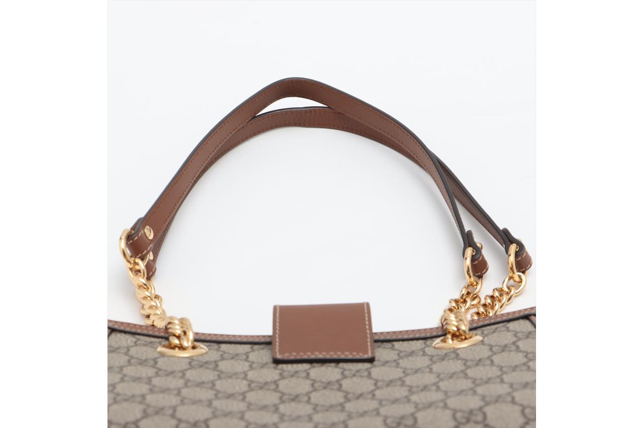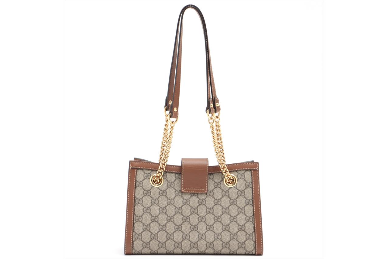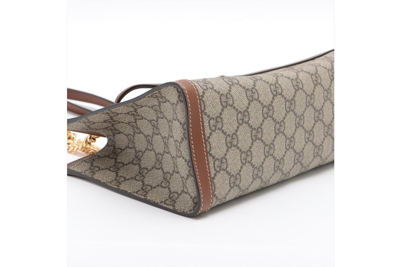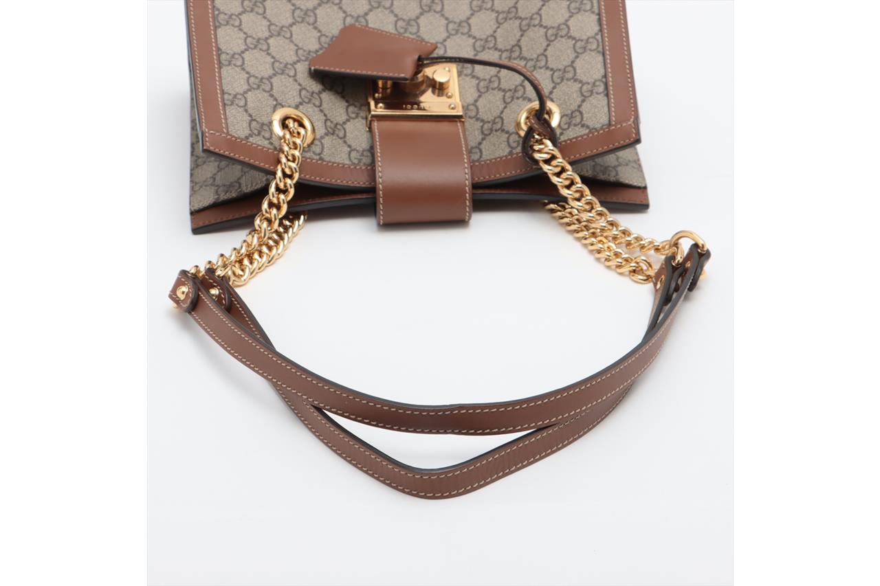 Gucci Small GG Padlock Shoulder Bag in beige/ebony GG Supreme canvas with brown leather detail. Featuring gold-tone hardware, Microfibre lining with a suede-like finish, and lock closure. Style: ?498156 KHNKG 8534.