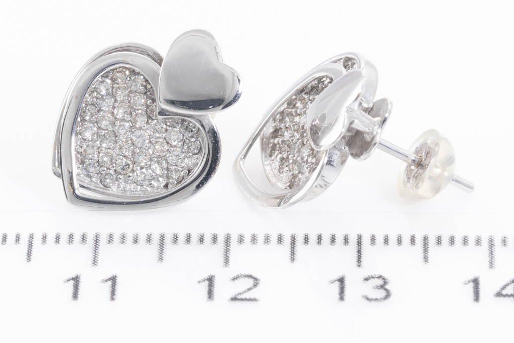 Heart design Diamond Earrings with round Diamonds totalling 0.40cts (Estimated grading: H-I SI). 18ct white gold. Weight: 5.1g. (Pre-owned)