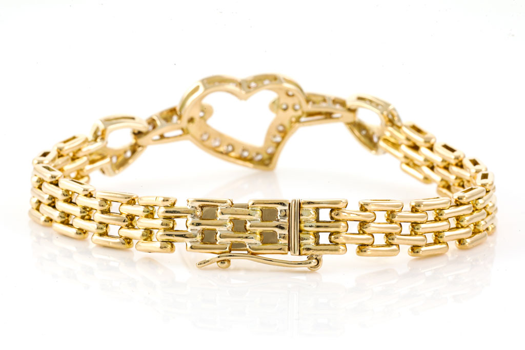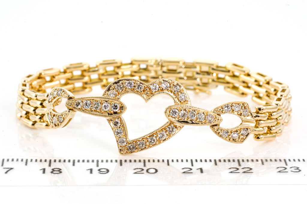 Heart Diamond Bracelet, 18ct Gold 24.4g