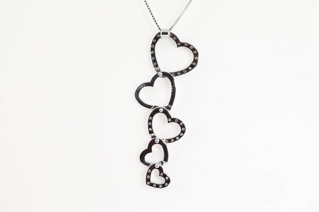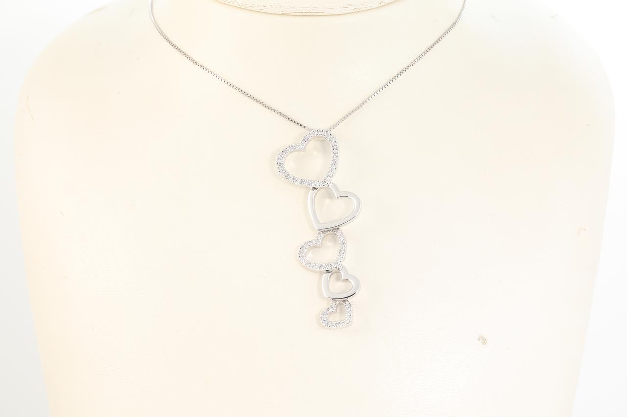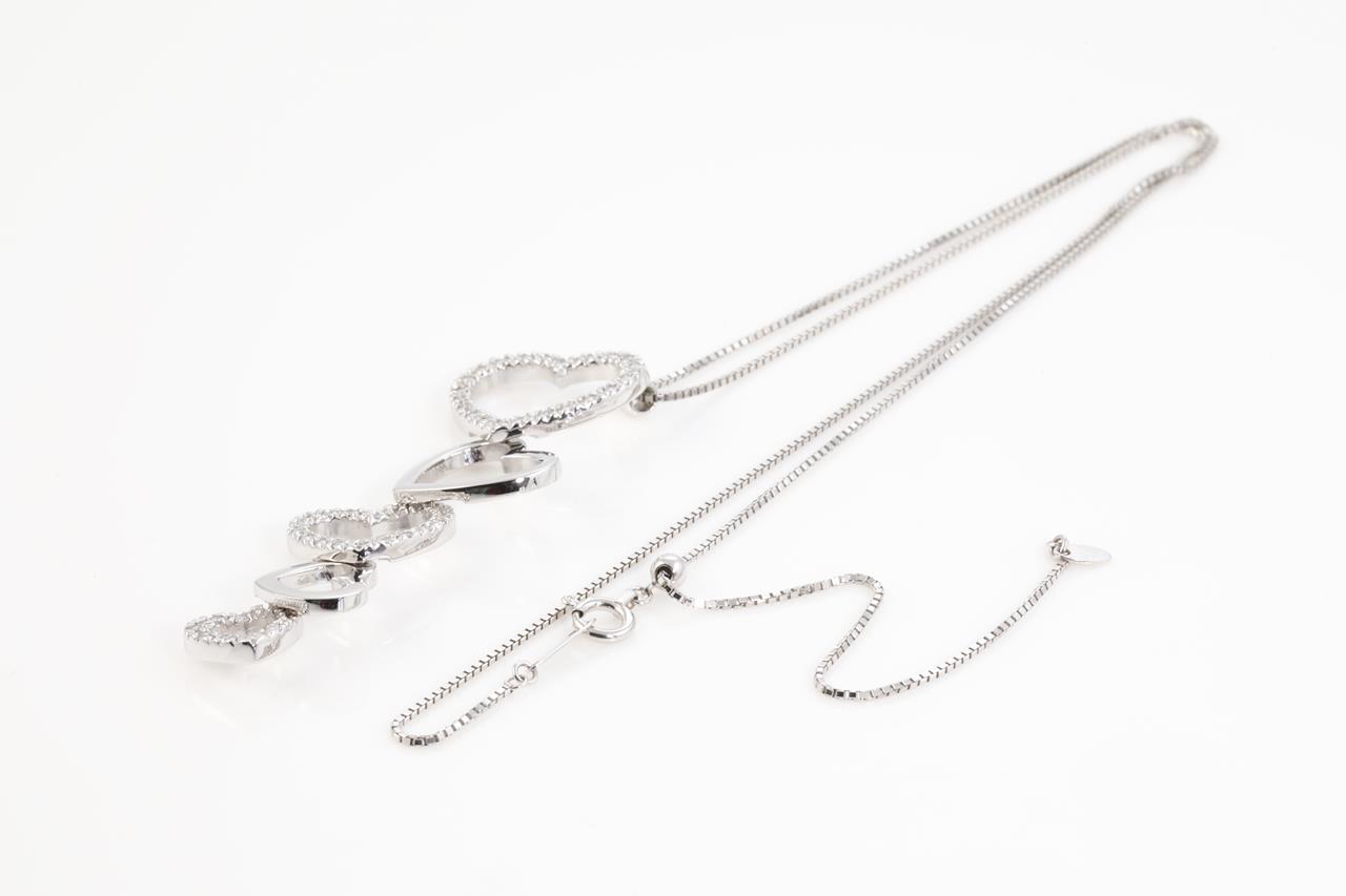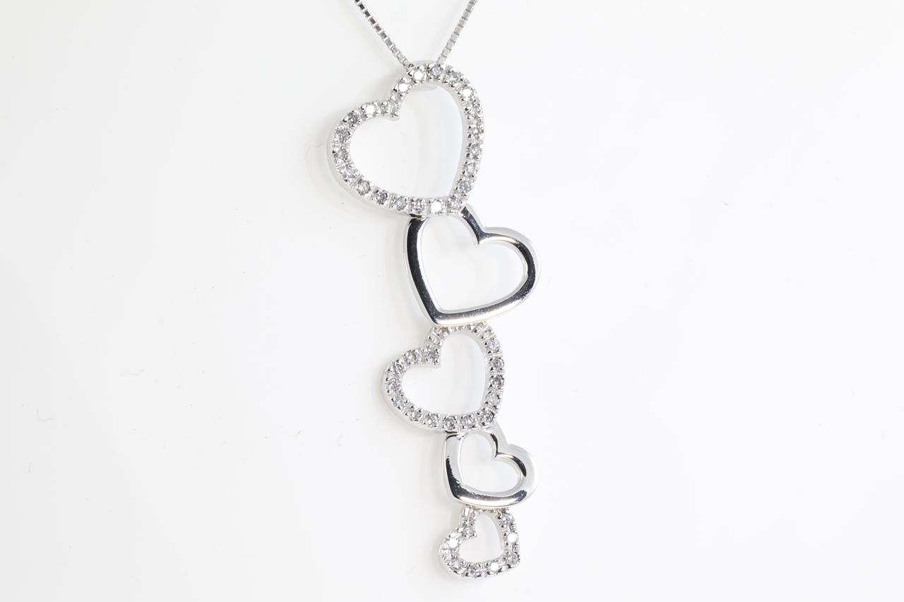 Diamond pendant with round Diamonds totalling 0.45cts (Estimated grading: H-I P1). 18ct white gold with 18ct gold adjustable 45cm chain. Weight: 8.7g (Pre-owned).