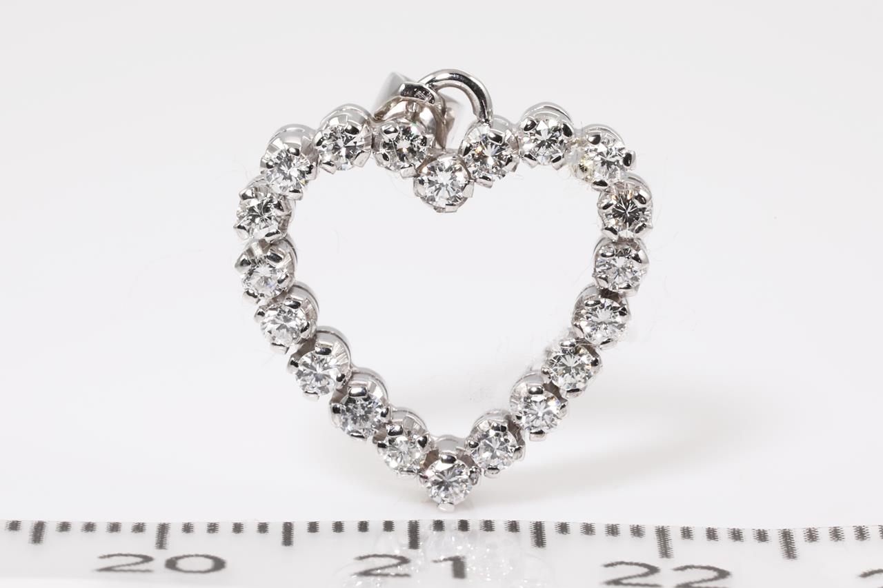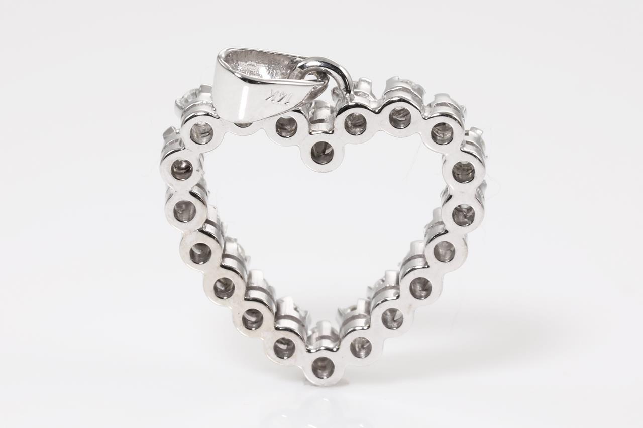 Heart Diamond Pendant with round cut Diamonds totalling approximately 0.40cts (Estimated grading: H SI). 14ct white gold, no chain. Width 2.7mm. Weight 2.6g. (Pre-owned)