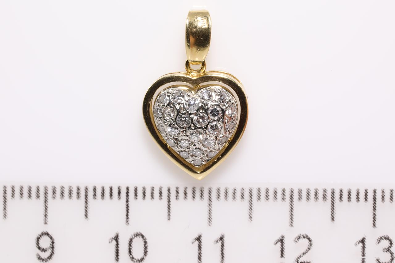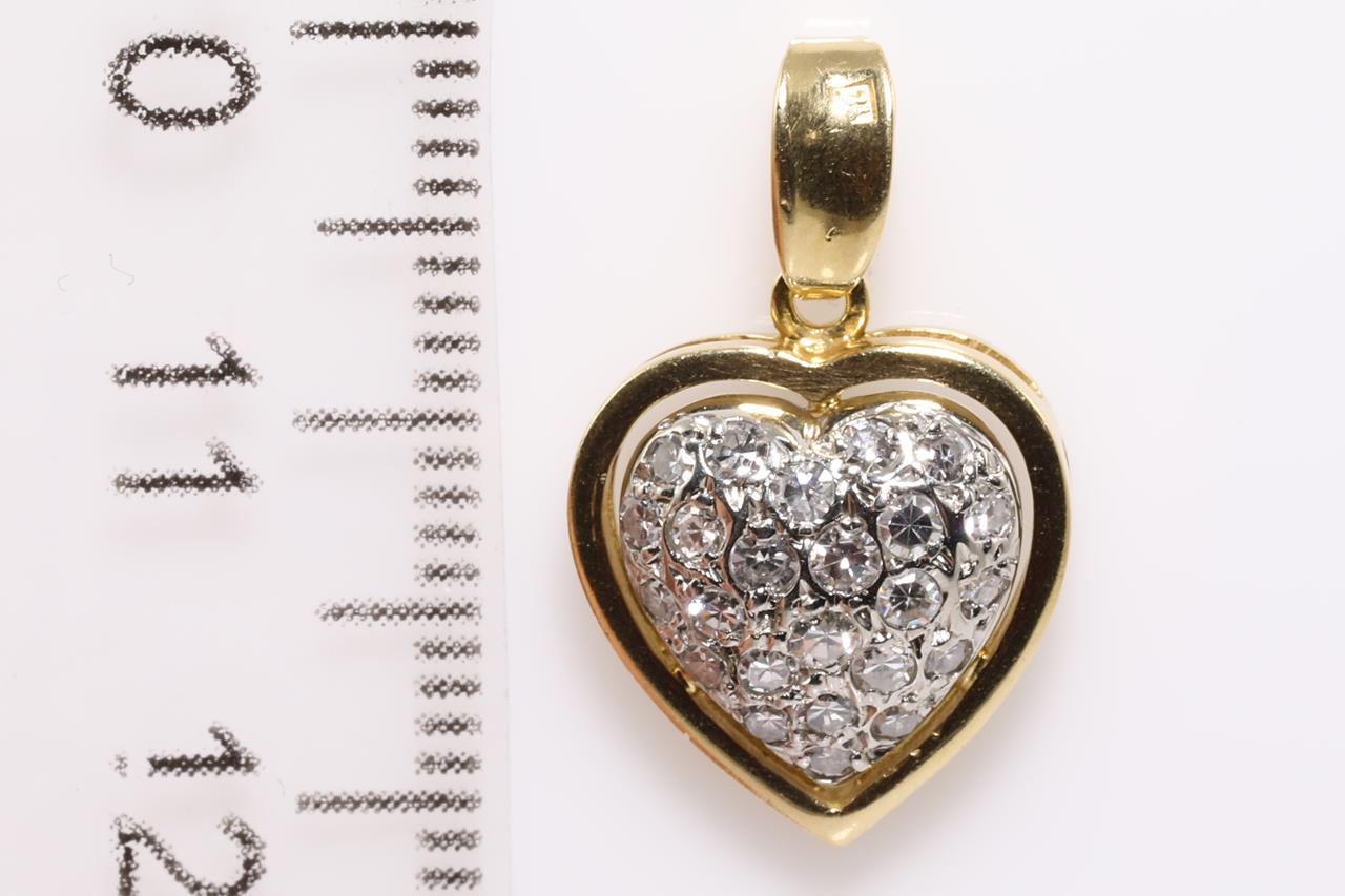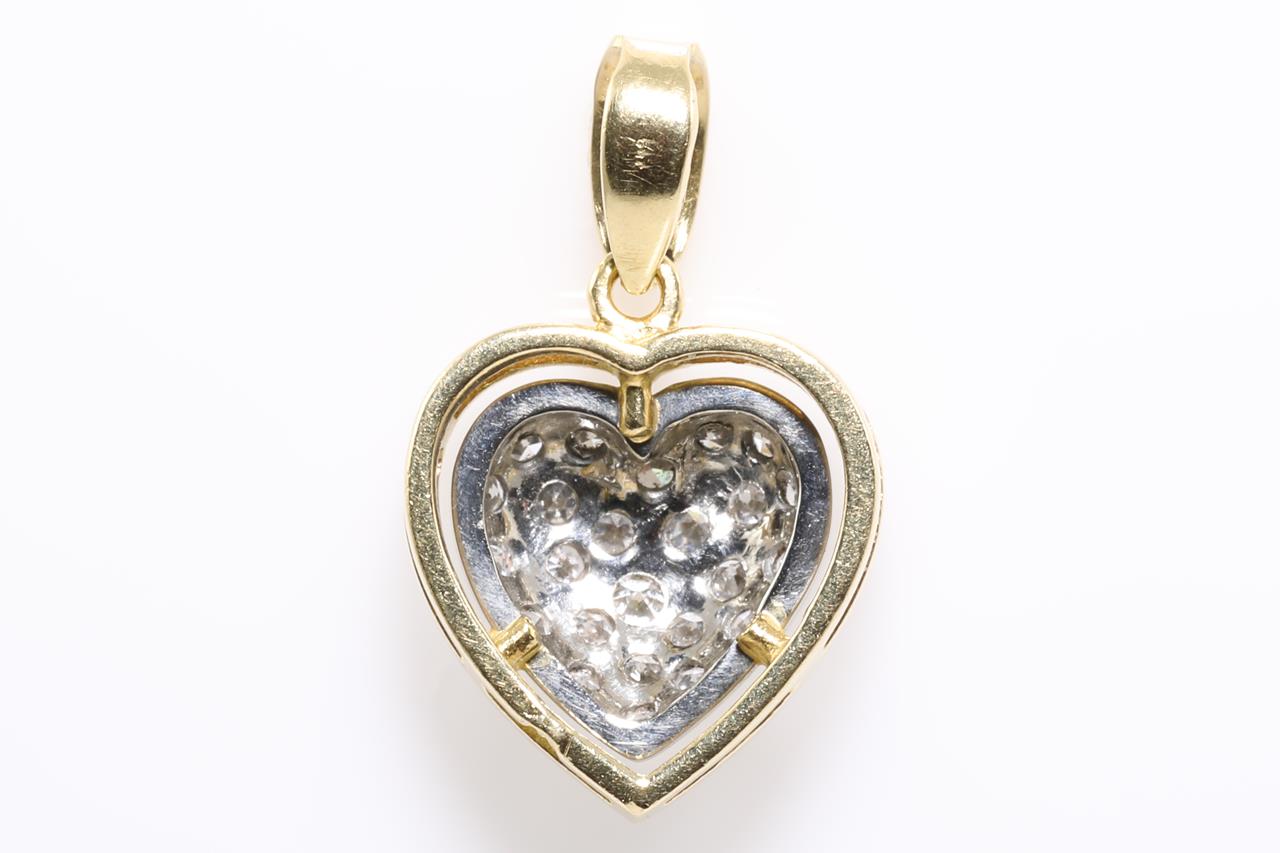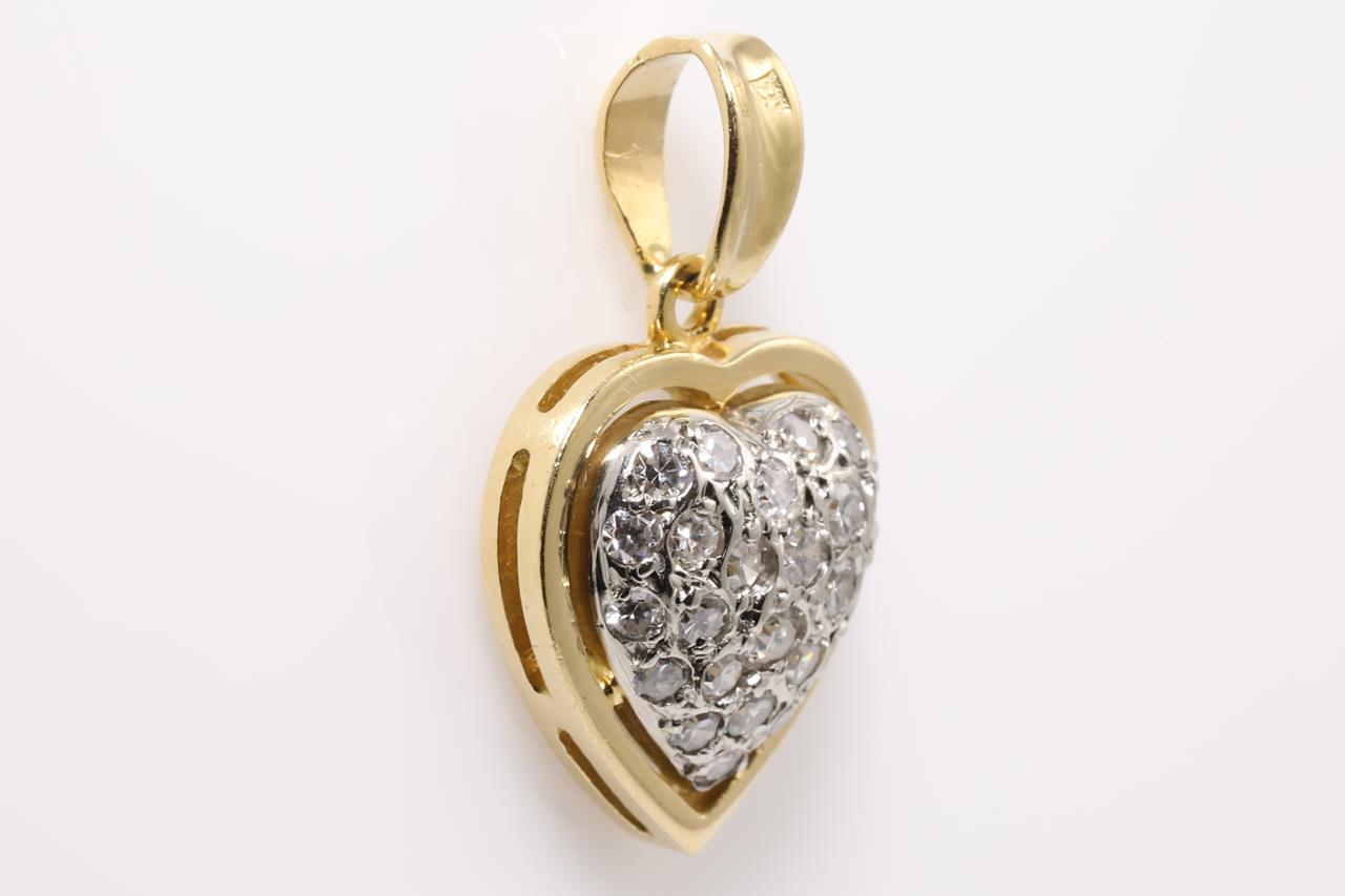Heart Shaped Diamond Pendant with round old cut Diamonds totalling approximately 0.25cts (Estimated grading: H-I SI). 18ct white and yellow gold, no chain provided chain. Weight 2.5g. (Pre-owned)