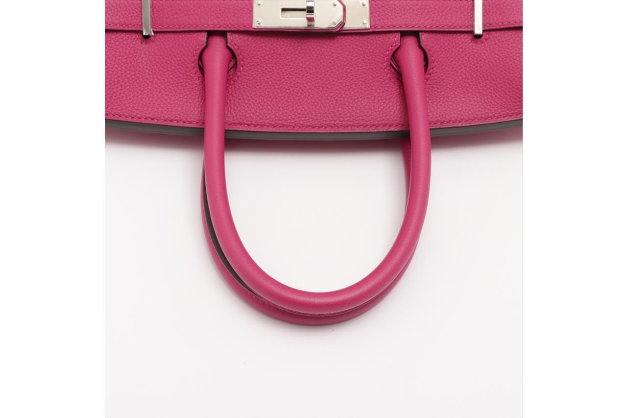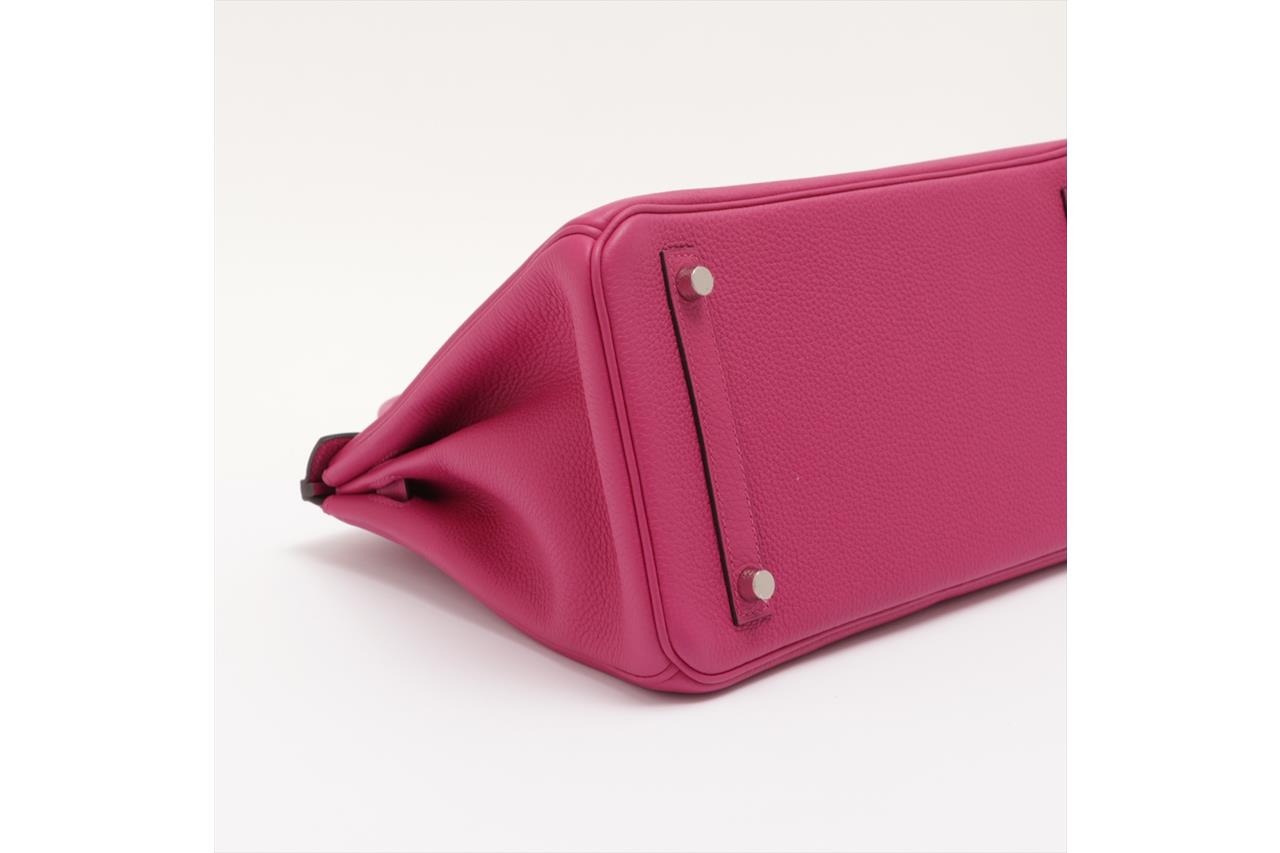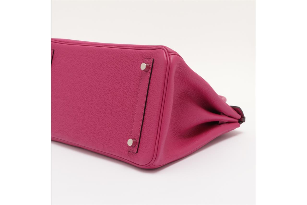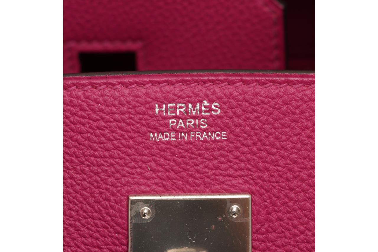 Hermès Birkin 30 Rose Pourpre in Togo Leather and Palladium Hardware PHW. Circa 2017. Dimensions: 30cm (L) x 22cm (H) x 16cm (D). Made in France. Strap & twist-lock fastening. Two rounded top handles with height of approximately 10cm. Plastic remains on palladium hardware. With Hemes box, dust bag, clochette, lock & key. With Entrupy Certificate of Authenticity. (Pre-owned)