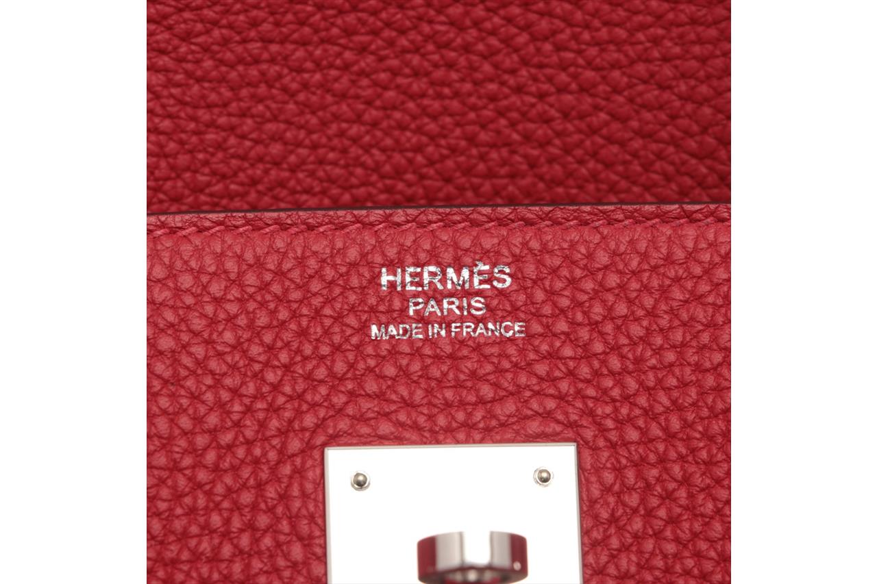 Hermès Birkin Verso 30 Togo Rouge Kazac x Rouge with ash silver metal fittings bag. Circa 2020. Dimensions: 30.5cm(L) x 22.5cm(H) x16cm(D). Handle height: 10cm. Accompanied with cadena crochet, Hermes dust bag and box. With Entrupy Certificate of Authenticity. (Pre-owned)