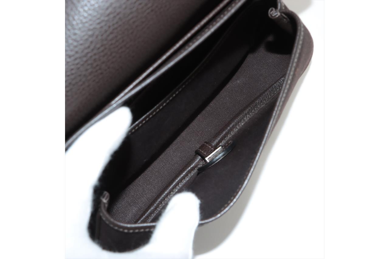 Hermès Colorado PM shoulder bag in dark brown leather/canvas. Square I stamp (circa 2005). Featuring silver-toned hardware, double flap and strap closure on front, one main compartment interior with single pocket. Approximate dimensions: 23cm(L) x 15cm(H) x 6cm(D), 34cm adjustable shoulder strap height. Accompanied by Hermes dust bag and box. With Entrupy Certificate of Authenticity. (Pre-owned)