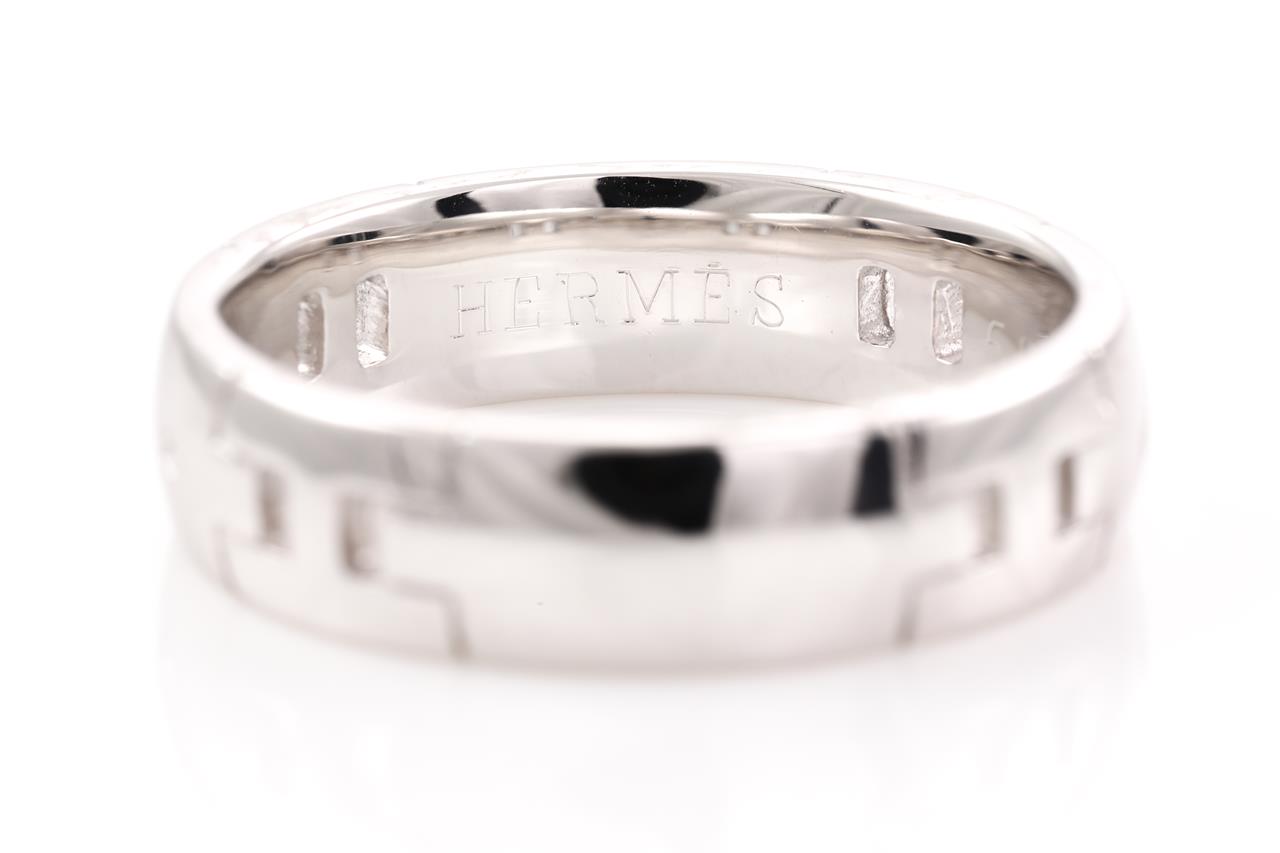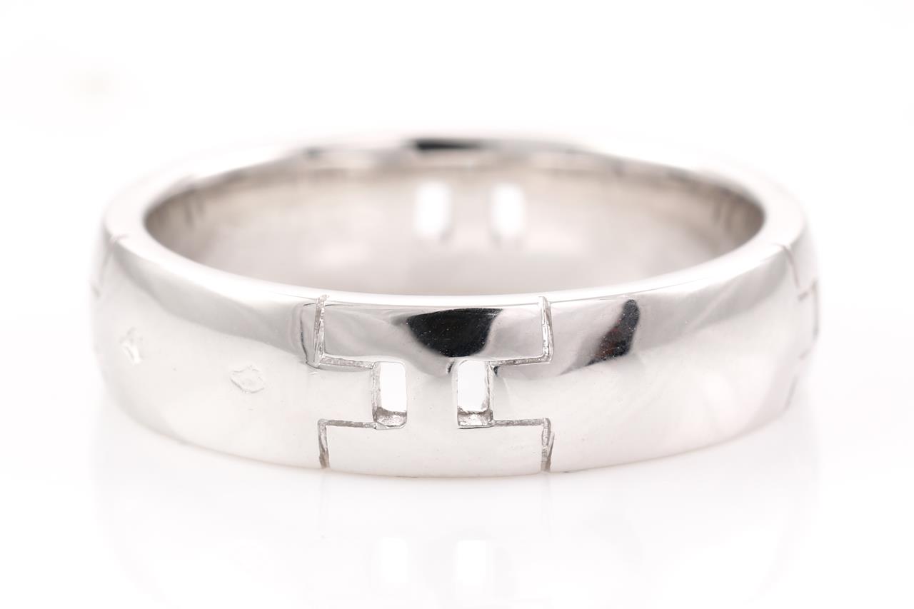 Hermès Hercules mens 18ct white gold ring. Weight 9.3g. Hermes stamped size 59, R1/2 - ring resizing is not recommended. (Pre-owned)