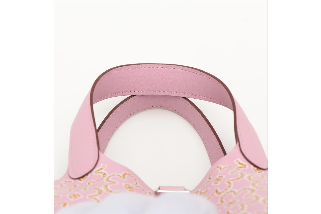 Hermès micro Picotin bag in Mauve Sylvestre Swift leather with lucky daisy print (stamp U, 2022). Silver-toned hardware, open top, pink suede lining interior. Approximate dimensions: 12.5cm(L) x 12cm(H) x 9.5cm(D), 9cm handle drop. Accompanied by Hermes padlock, keys, booklets, dust bag and box. With Entrupy Certificate of Authenticity. (Pre-owned)