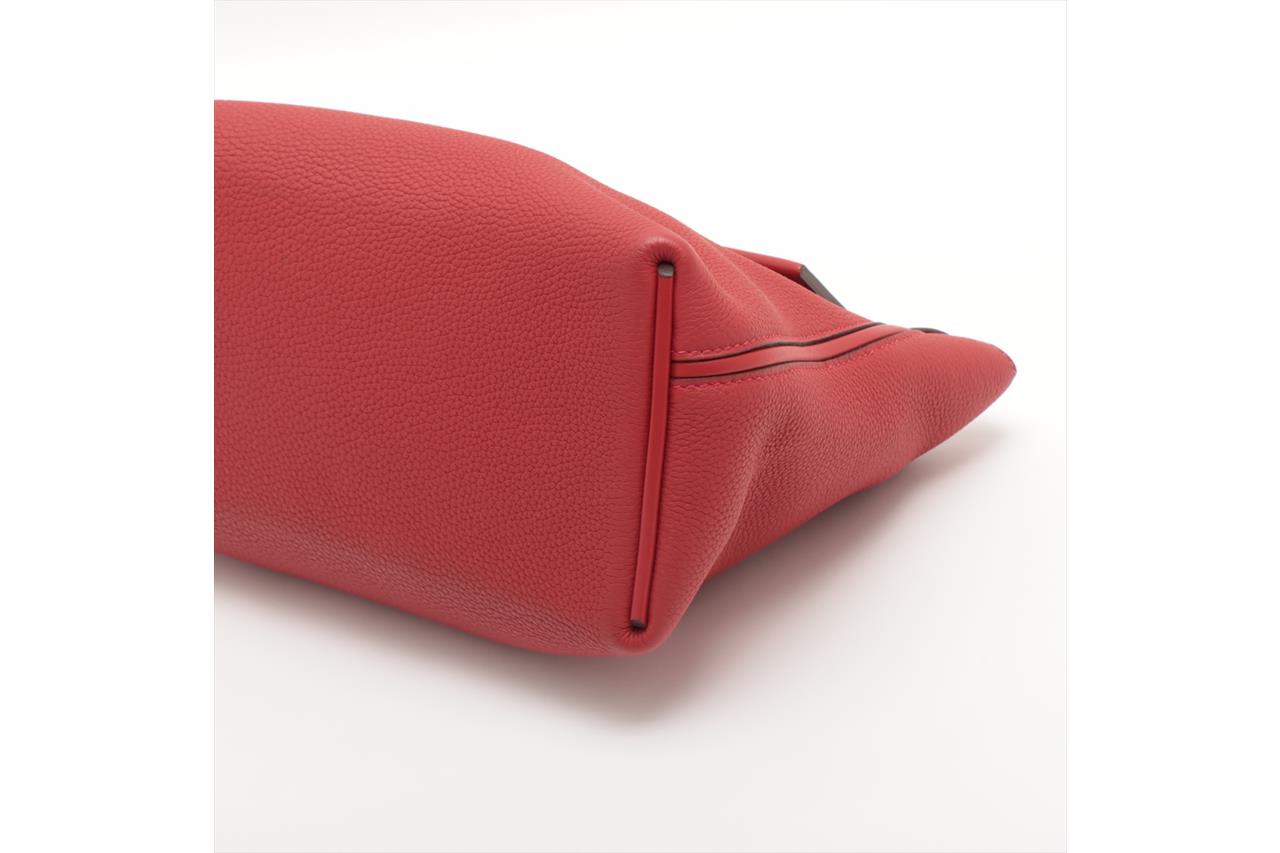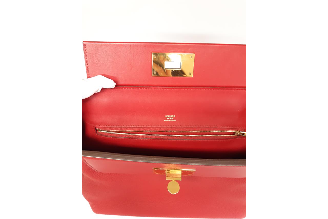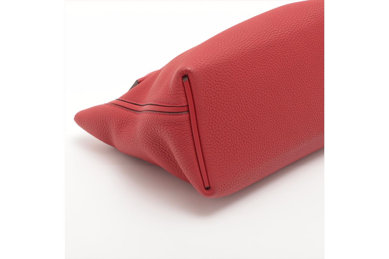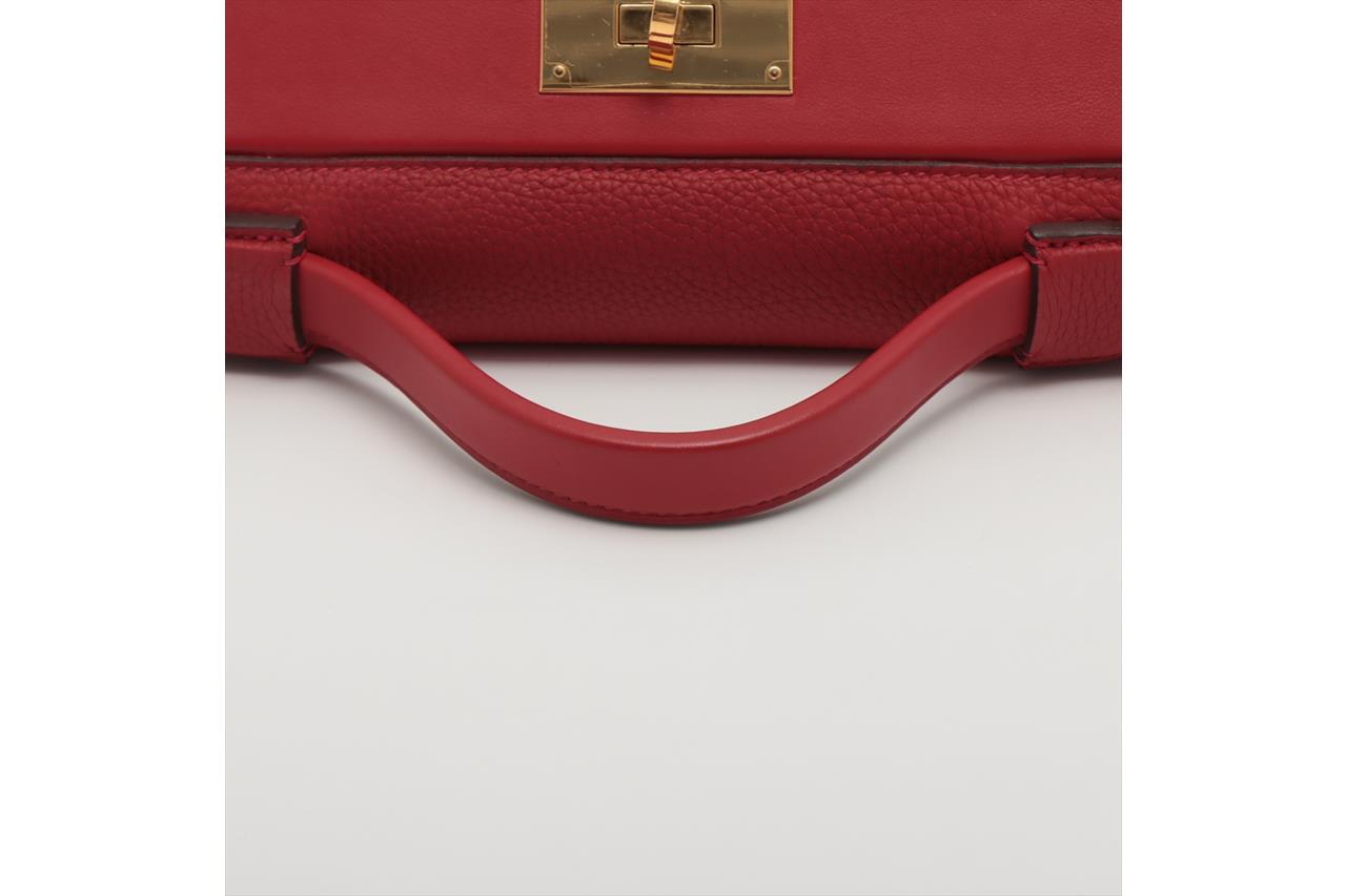 Hermes 24/24 29 2way bag in red Taurillon Clemence leather. (Stamp: Y, circa:2020). Featuring gold-toned hardware, a top leather handle, an exterior pocket at back, frontal flap with turned lock closure. The flap opens to a matching smooth leather interior with a zipper pocket. Approximate dimensions: 28.5cm(L) x 20cm(H) x 13.5cm(D), 6cm handle drop and 34.5cm removable strap drop. Accompanied by Hermes dust bag. With Entrupy Certificate of Authenticity. (Pre-owned)