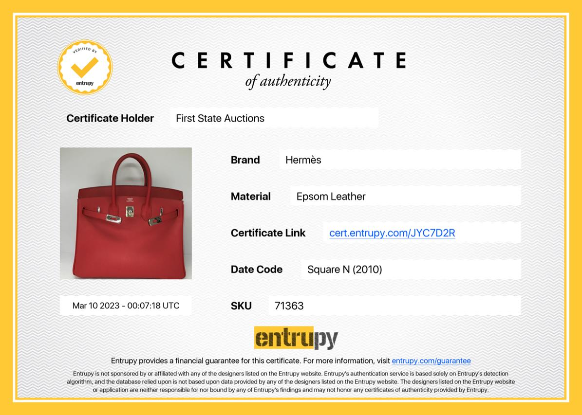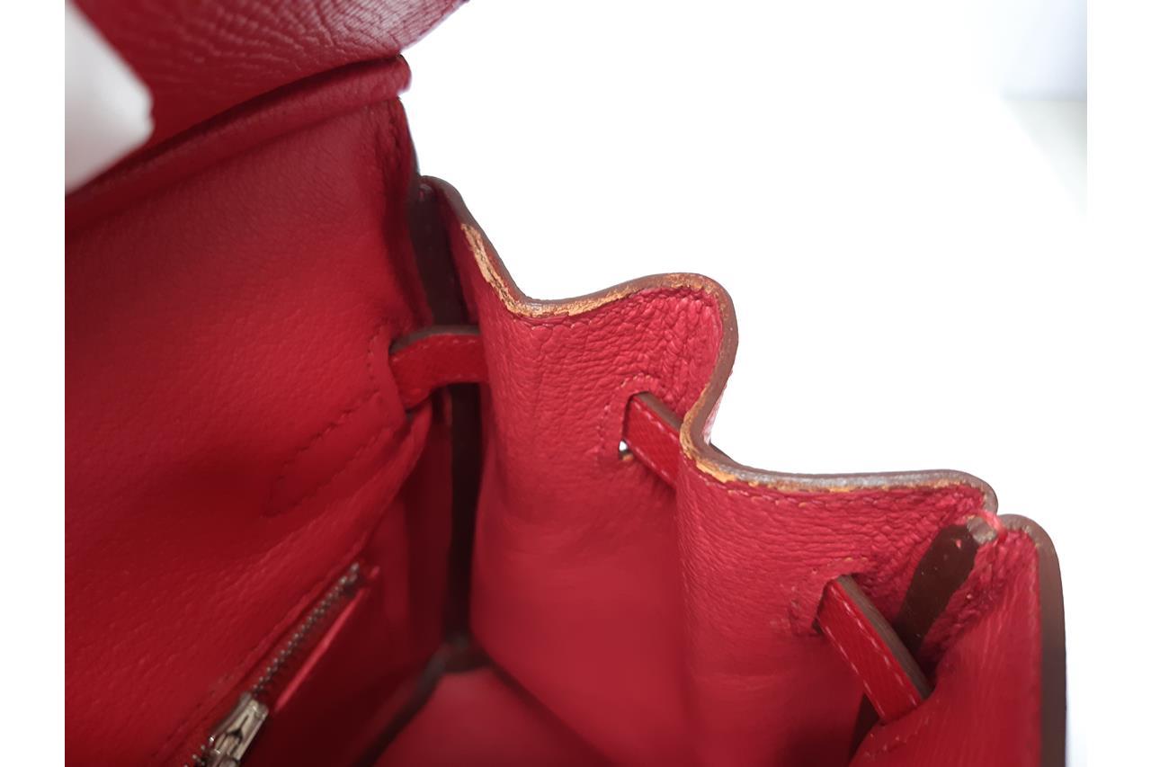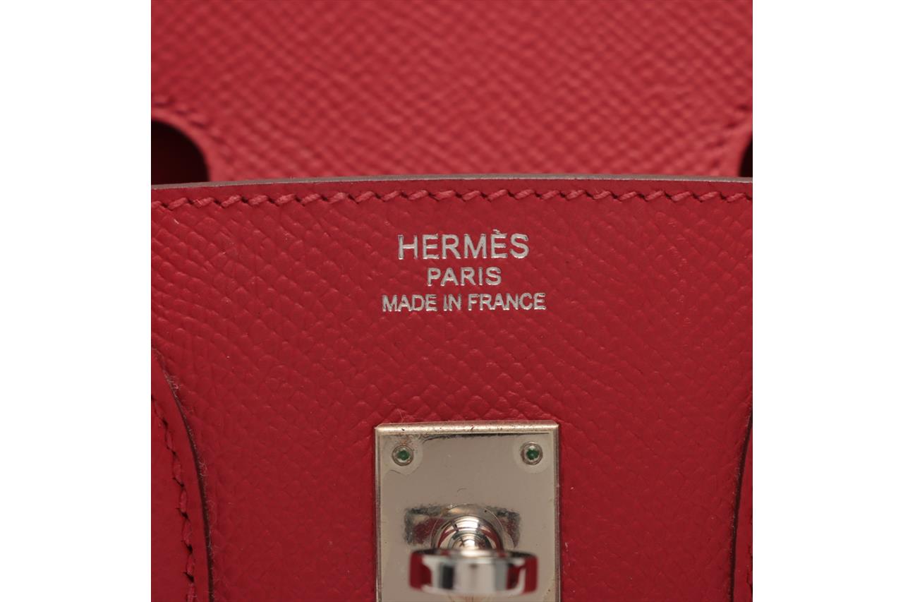 Hermes Birkin 25 in Bougainvillier Red Epsom Leather (Square N, 2010). Silver-toned hardware. Featuring rolled leather top handles, frontal flap with strap closure and a turn lock. The top flap opens to a matte leather interior with zipper and patch pockets. Approximate dimensions: 25cm (L) x 20cm (H) x 13cm (D) and 8.5cm handle drop. Accompanied by Hermes dust bags, rain cover, clochette, keys and padlock. With Entrupy Certificate of Authenticity. (Pre-owned)