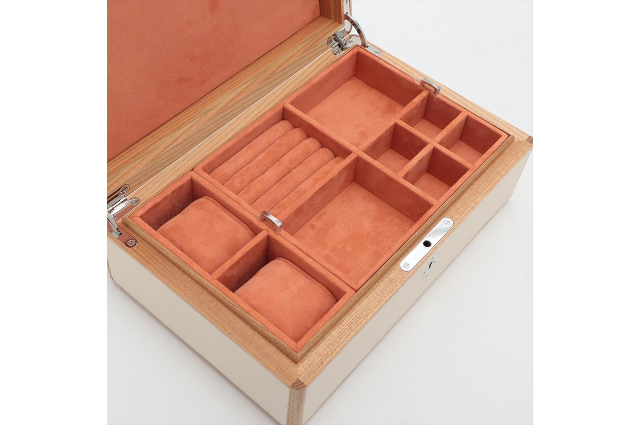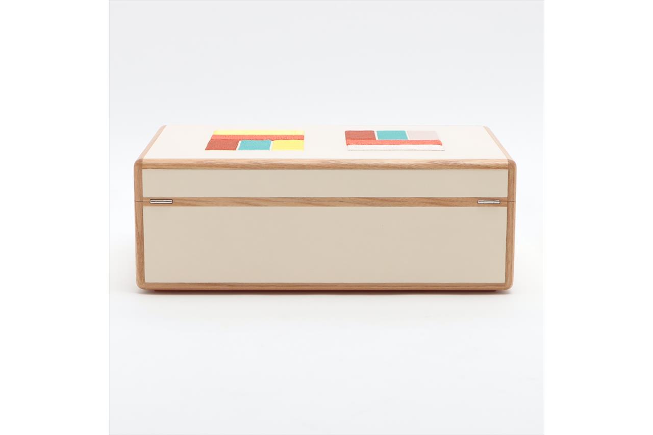 Hermes Amalthee Holi Watch & Jewellery Box, Large Model. Featuring solid elm with velvet lambskin lined interior, sides and lid in embroidered swift calfskin, lid in embroidered leather with silk thread and matte glass beads, closure and hinges made of stainless steel and includes a Hermes Paris engraved plaque. Approximate dimensions: 32cm (L) x 11cm (H) x 20.5cm (D). Accompanied by Hermes key and box. (Pre-owned)