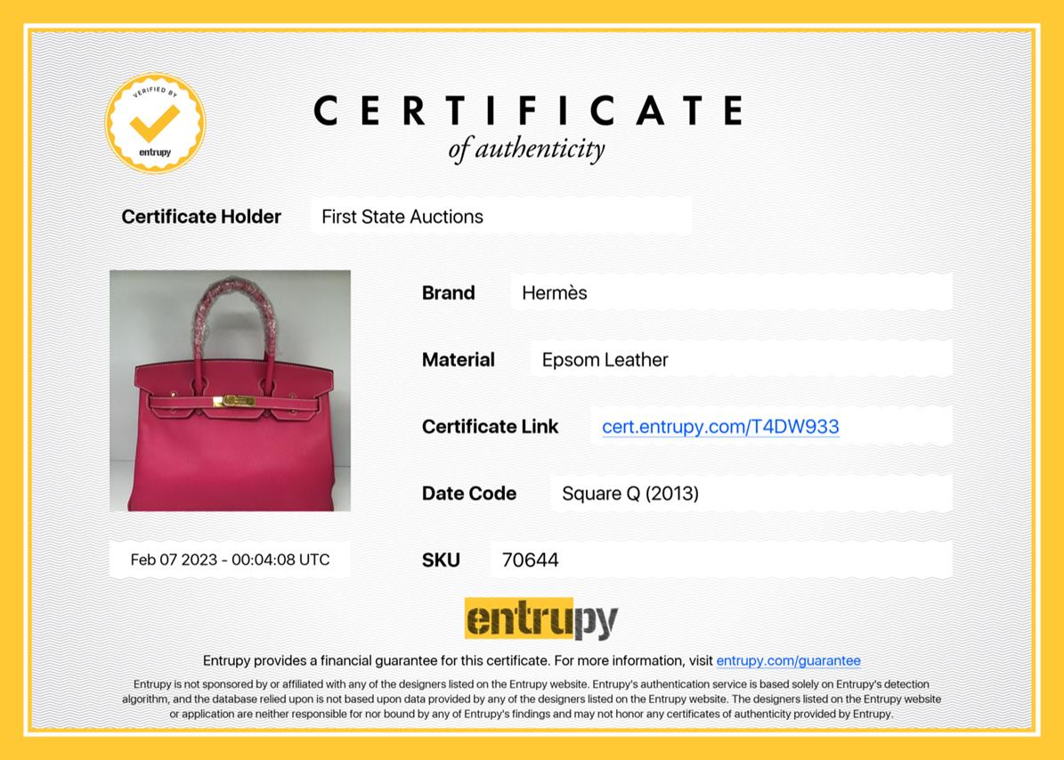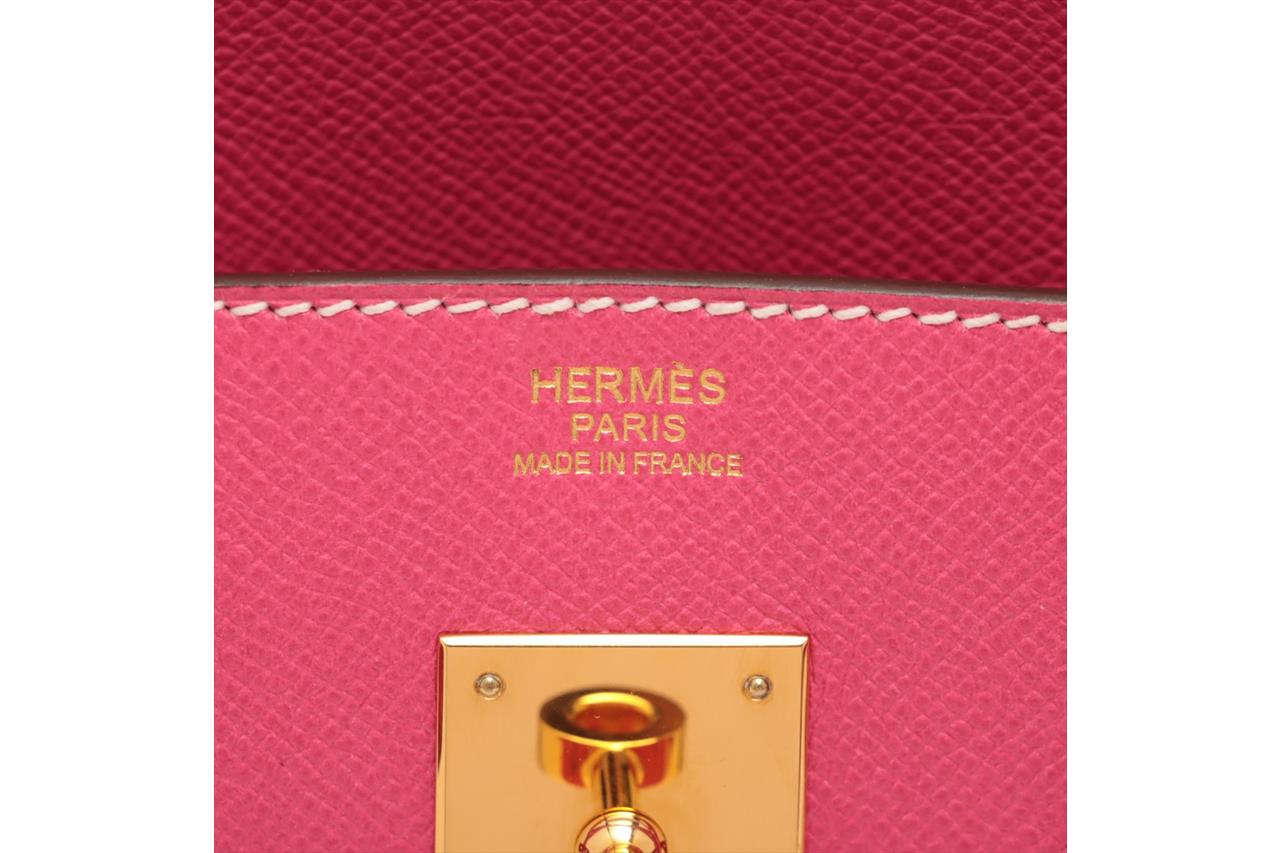 Hermes Birkin 30 in Rose Tyrien Epsom Leather (Square Q, 2013). Gold-toned hardware. Featuring rolled leather top handles, frontal flap with strap closure and a turn lock. The top flap opens to a matte leather interior with zipper and patch pockets. Approximate dimensions: 30cm (L) x 22cm (H) x 15cm (D) and 11cm handle drop height. Accompanied by Hermes dust bags, rain cover, clochette, keys and padlock. With Entrupy Certificate of Authenticity. (Pre-owned)