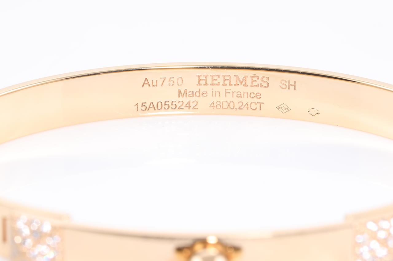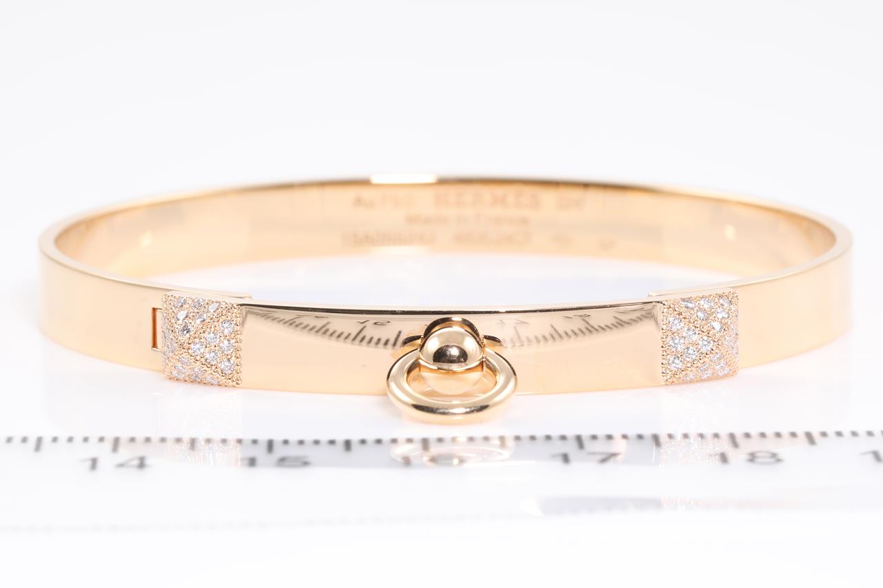 Hermes Collier de Chien small model bracelet with 48 Diamonds totalling 0.24cts. Made in France. Weight: 24.1g. 18ct rose gold. Circumferenc: 15cm. With certificate #414646. (Pre-owned)
