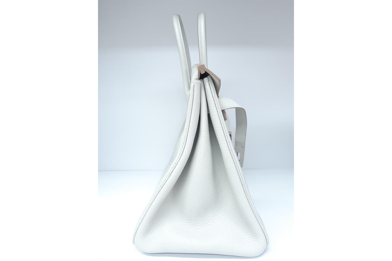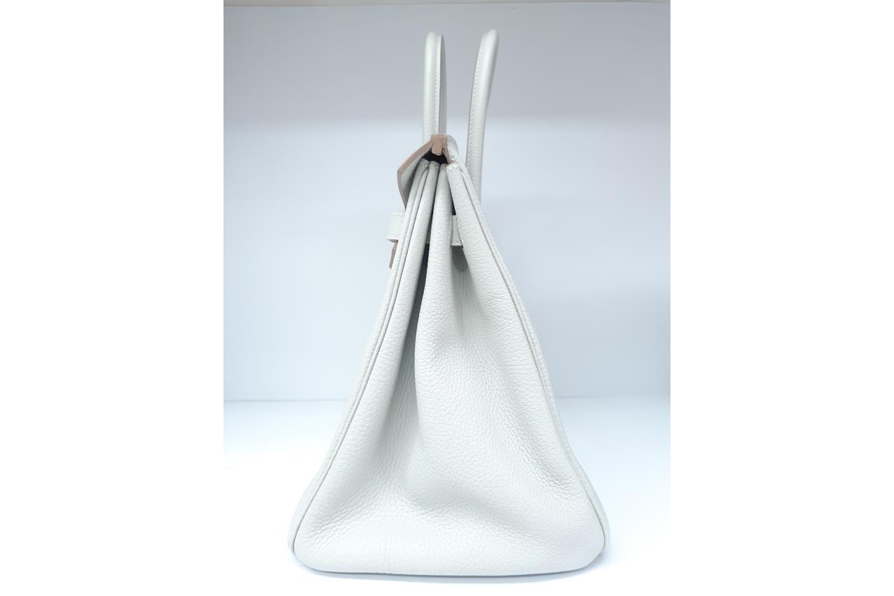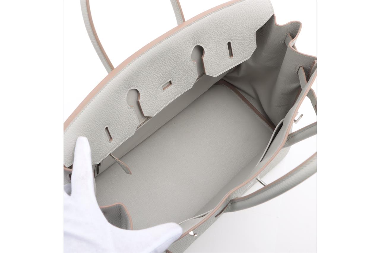 Hermes Gris Pearl Birkin 35 Taurillon Clemence with Silver hardware
