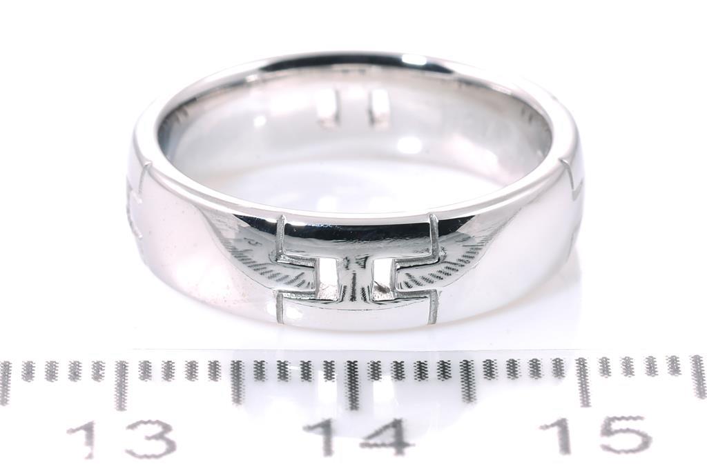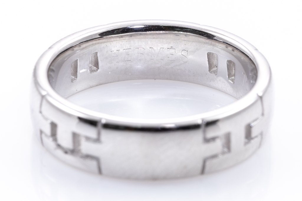 Hermes H Logo Hercules Ring. 18ct white gold. Hermes stamped size 53 (actual size L1/2) - ring resizing is not recommended. Weight: 7.3g. (Pre-owned)