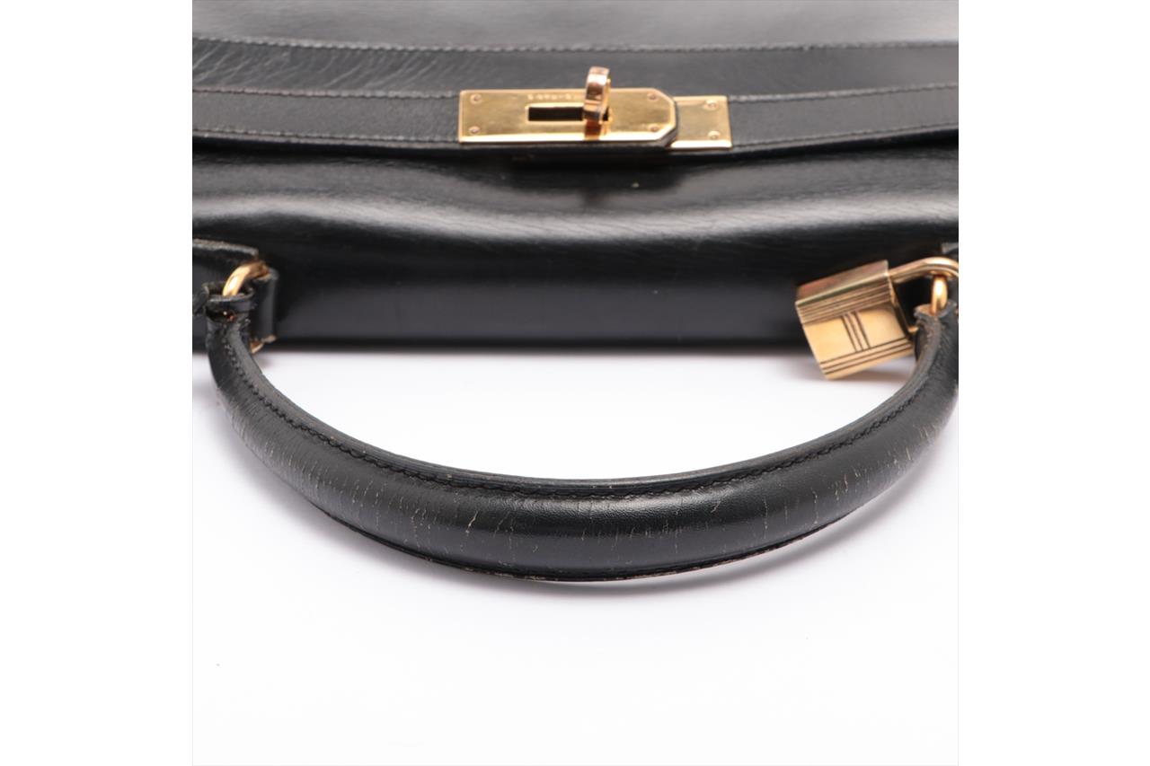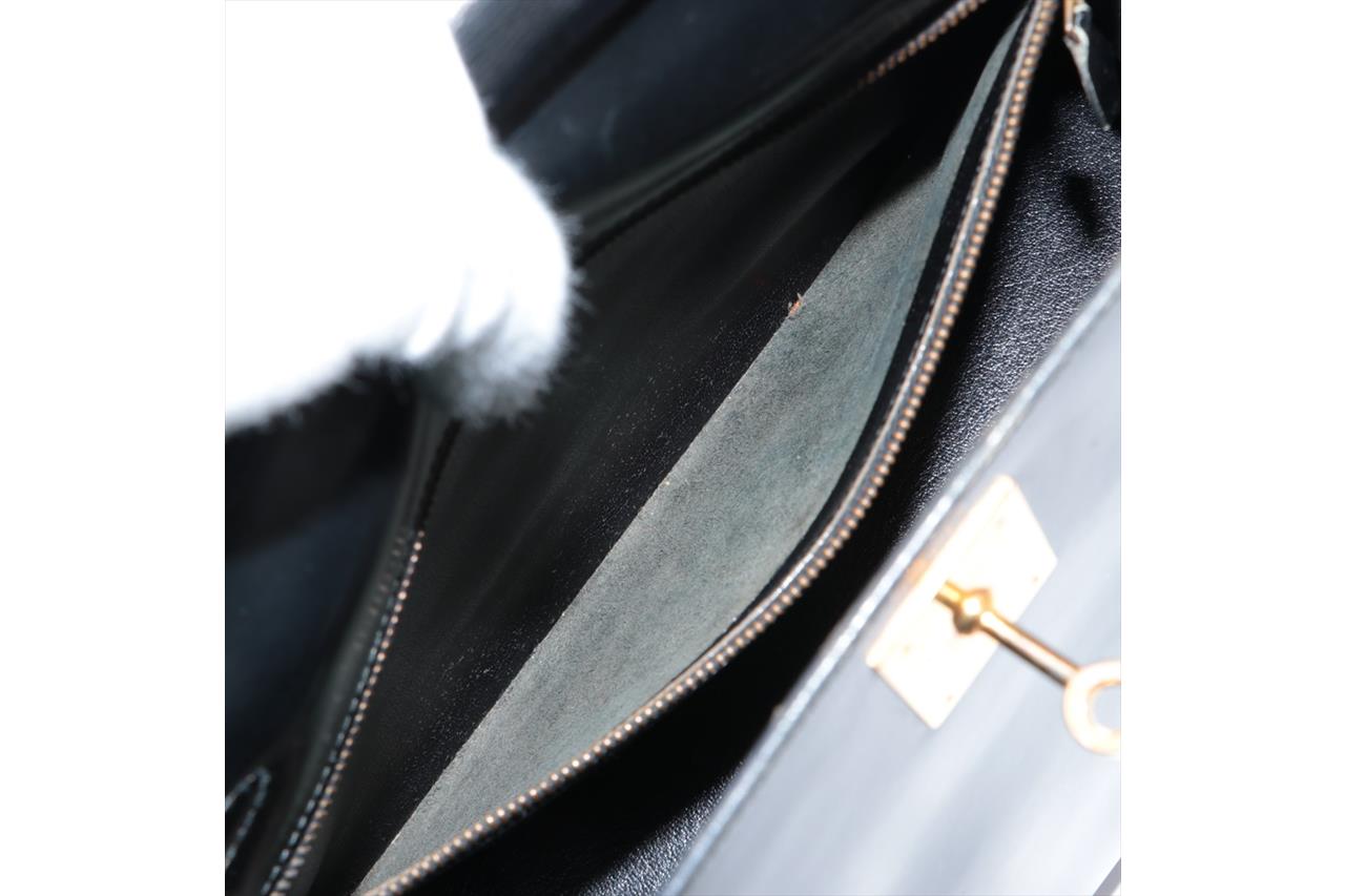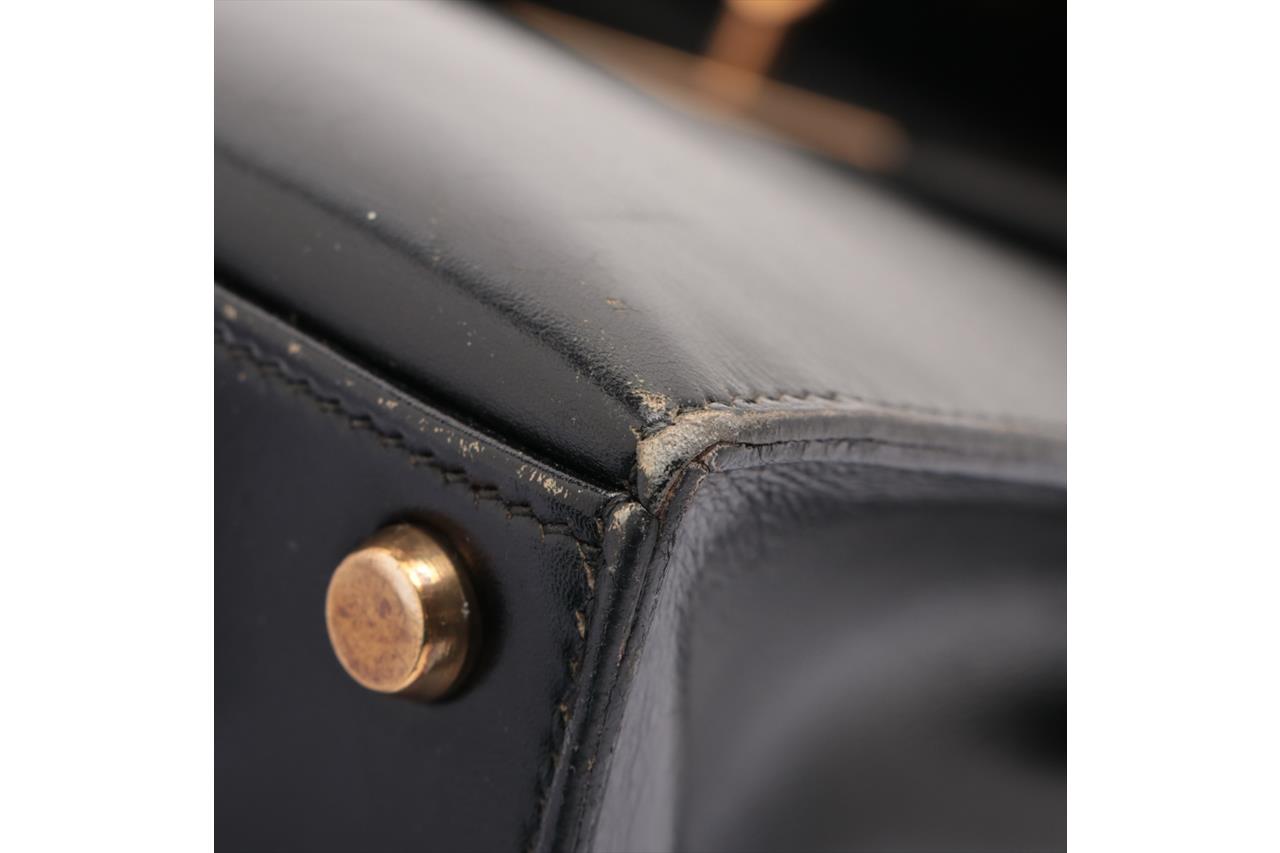 Vintage Hermes Kelly 28 in Black Box Calf Leather. Gold-tone hardware. Approximate dimensions: 28cm (L) x 22cm (H) x 11cm (D) and 10cm handle height. Accompanied by Hermes clochette, keys and padlock. With Entrupy Certificate of Authenticity. (Pre-owned)