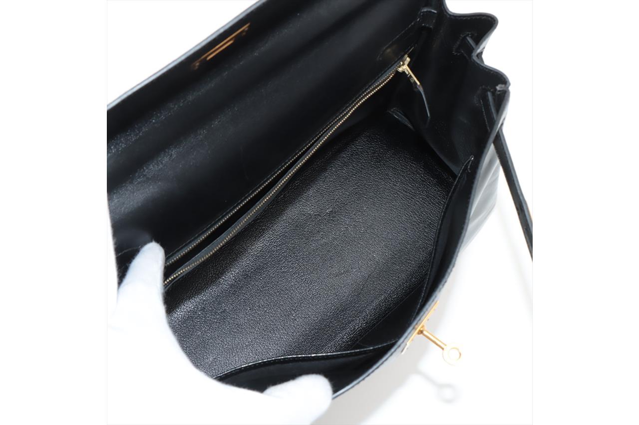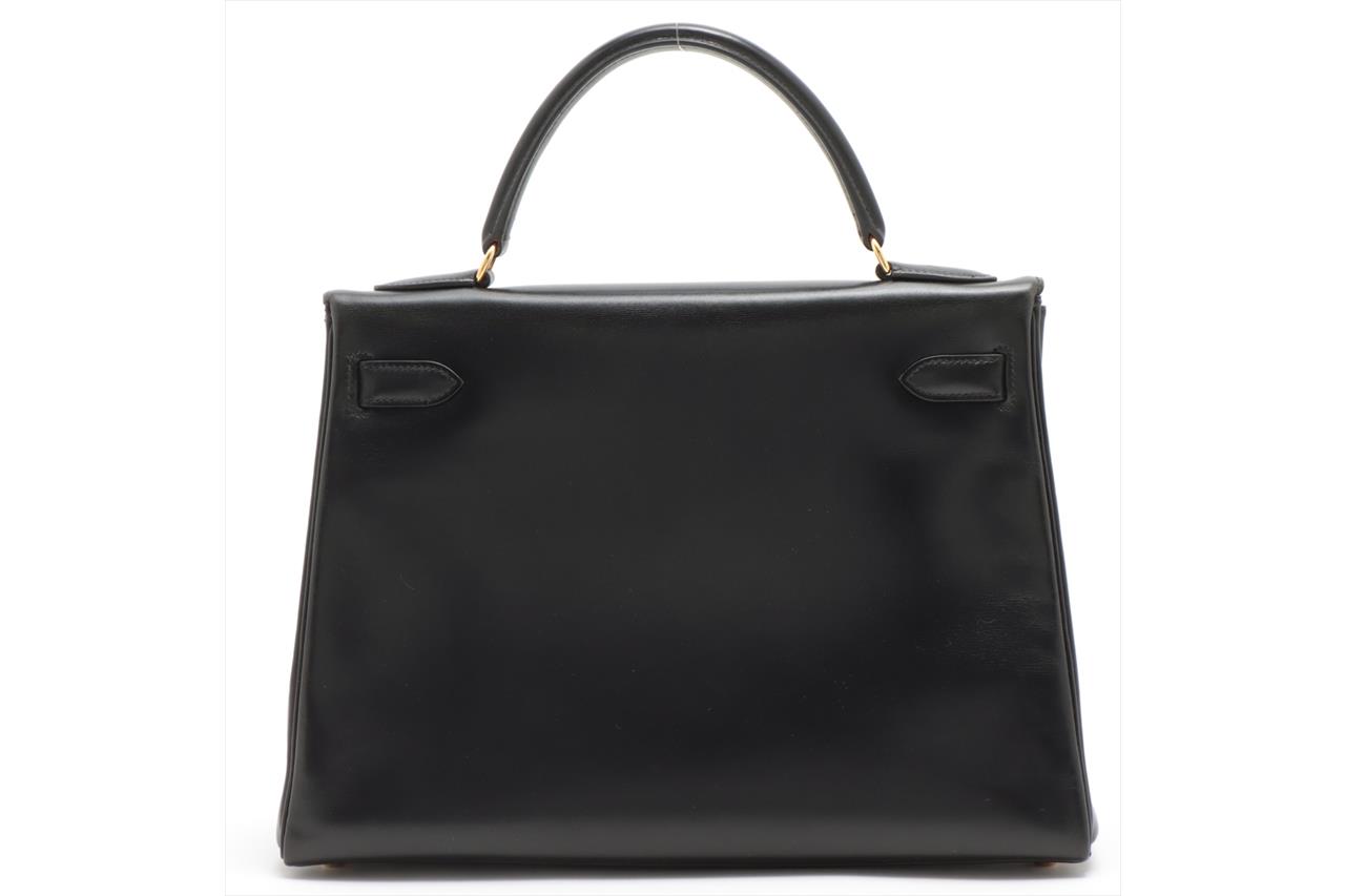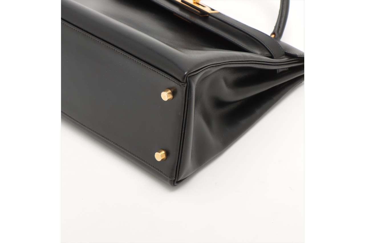 Hermes Kelly 32 Black Box Calf Leather Bag