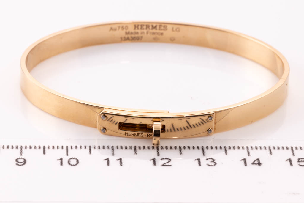 Hermes Kelly Diamond bracelet LG with 4 round Diamonds totalling 0.02cts. 18ct rose gold. Made in France Circumference: 17cm. Weight: 24.5g. With Certificate #416756. (Pre-owned)