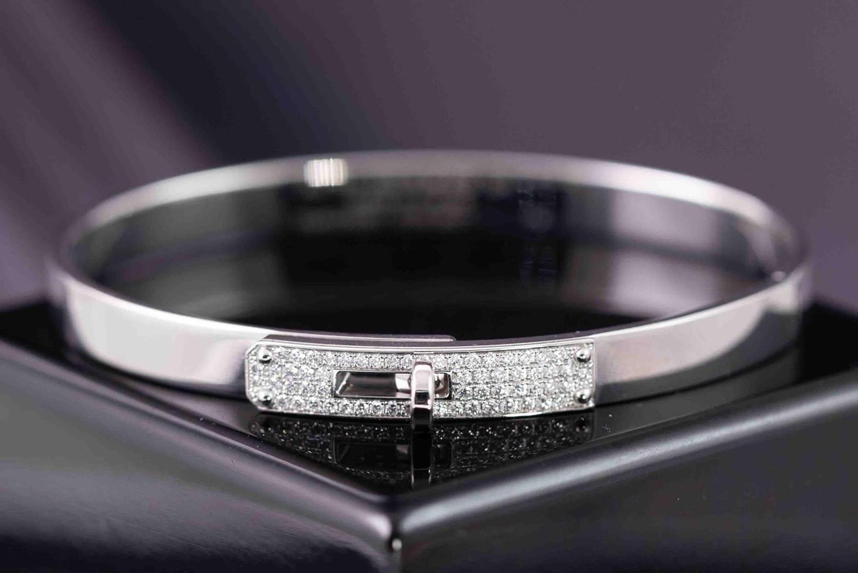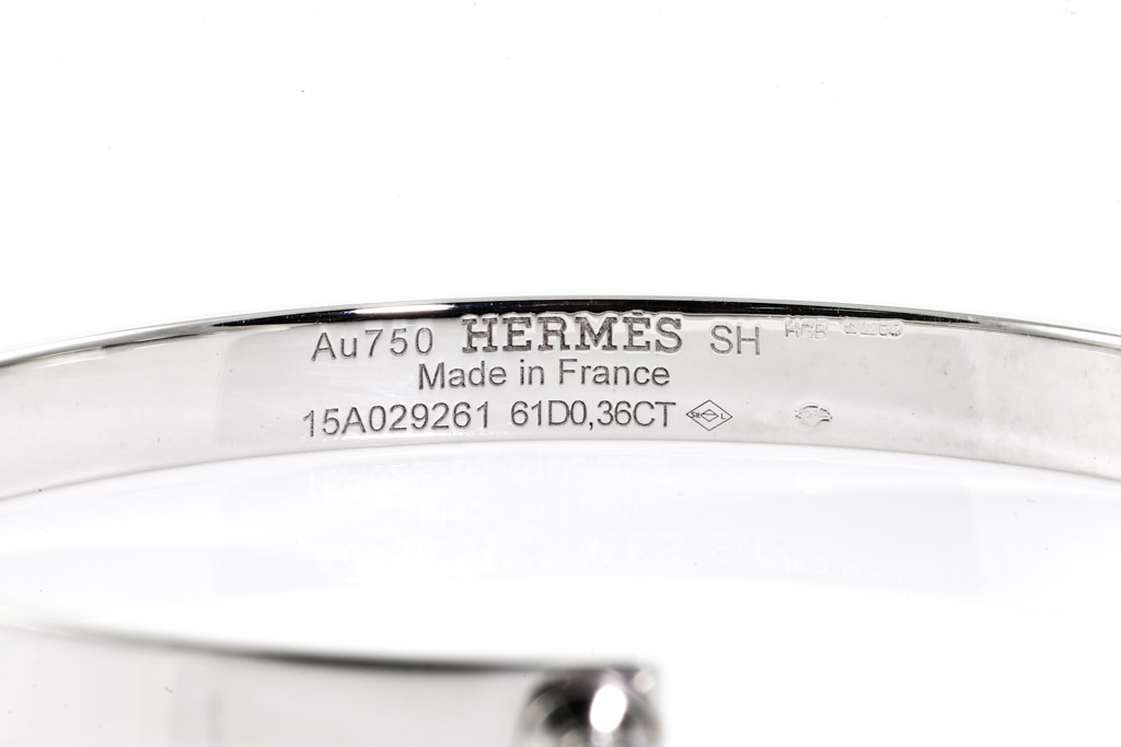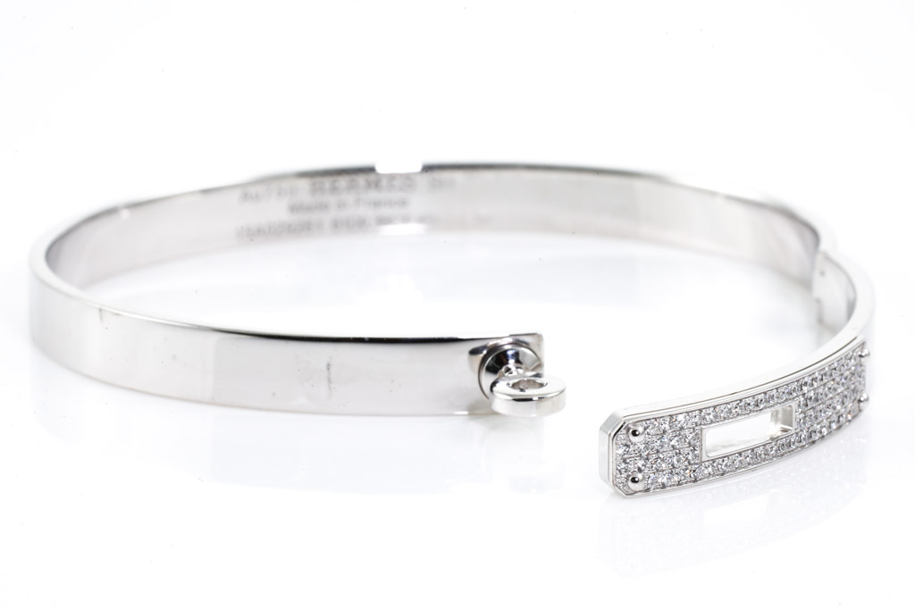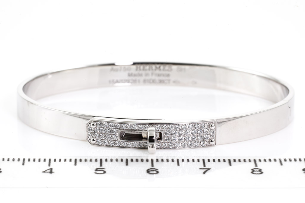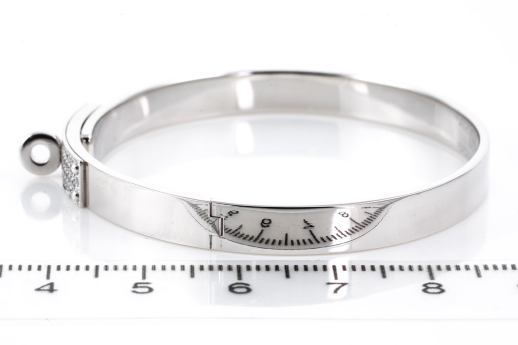 Hermes Kelly Diamond bracelet small model with round Diamonds totalling 0.36cts (Estimated grading: F VS). 18ct white gold. Made in France. Circumference: 16cm. Weight: 24.4g. With Certificate #416902. (Pre-owned)