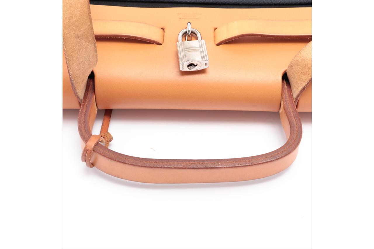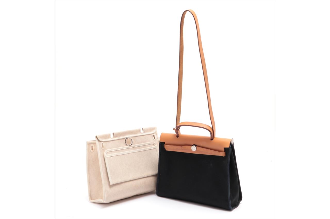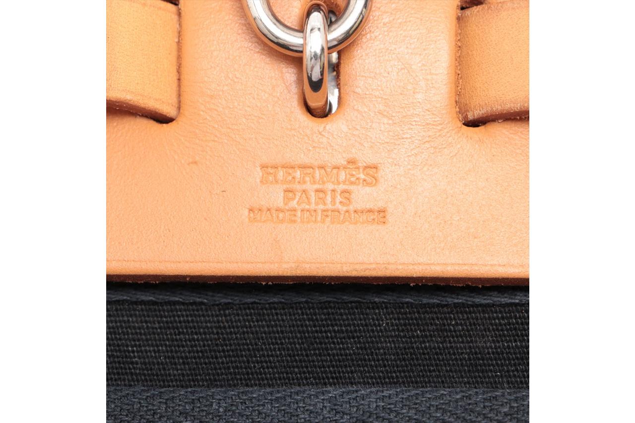 Hermes Navy Canvas Natural Leather Zip PM Herbag | First State Auctions