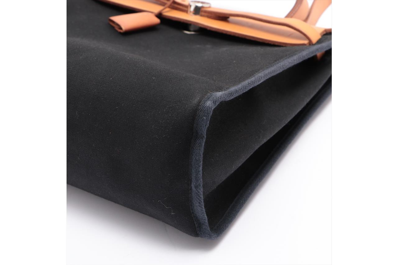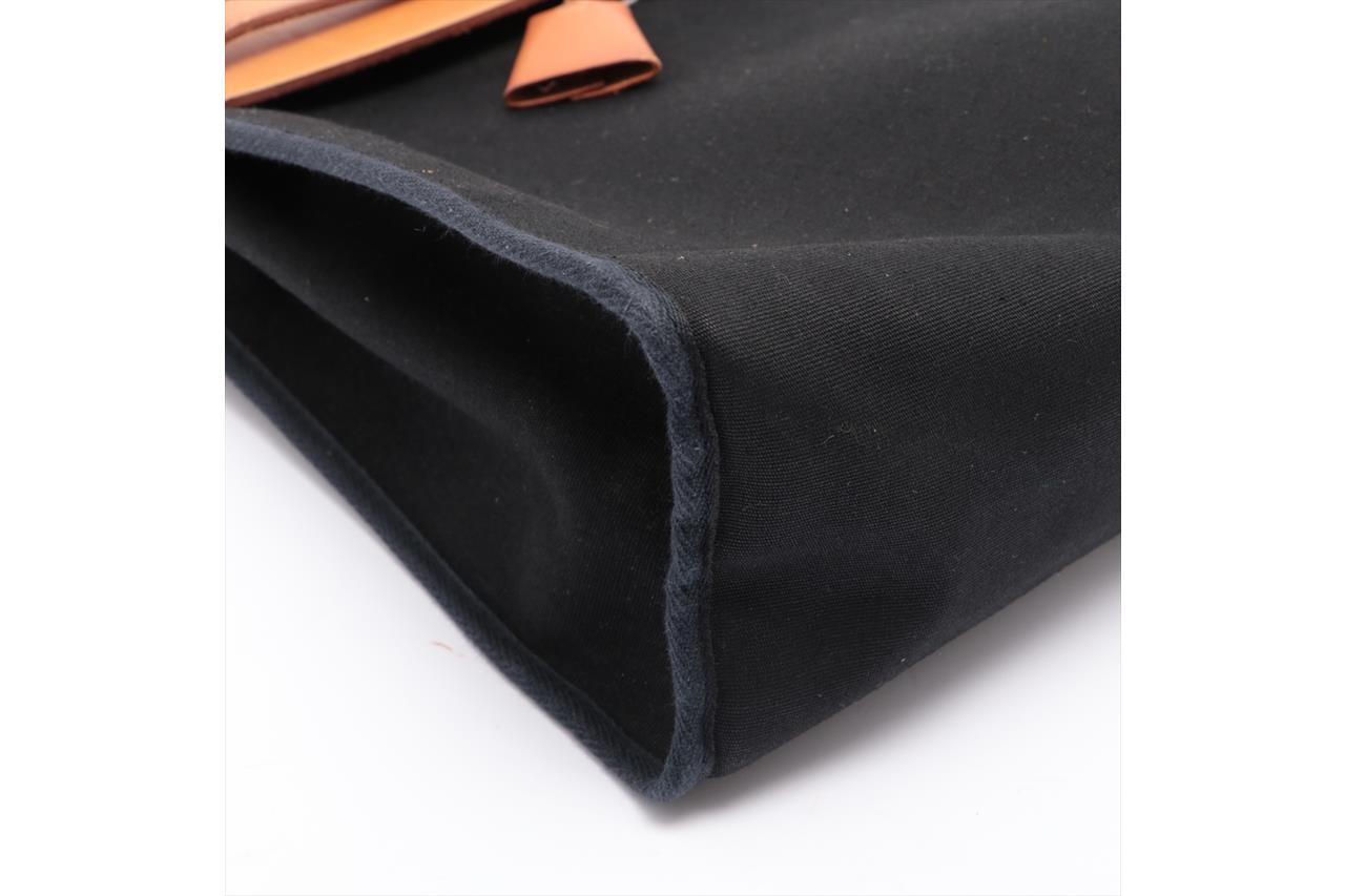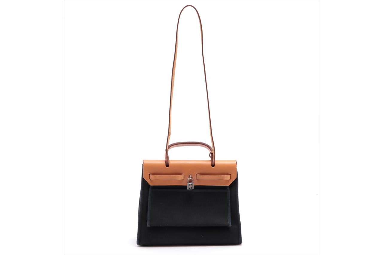 Hermes Navy Canvas Natural Leather Zip PM Herbag | First State Auctions