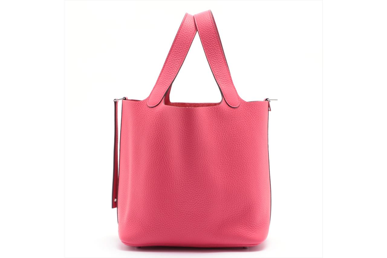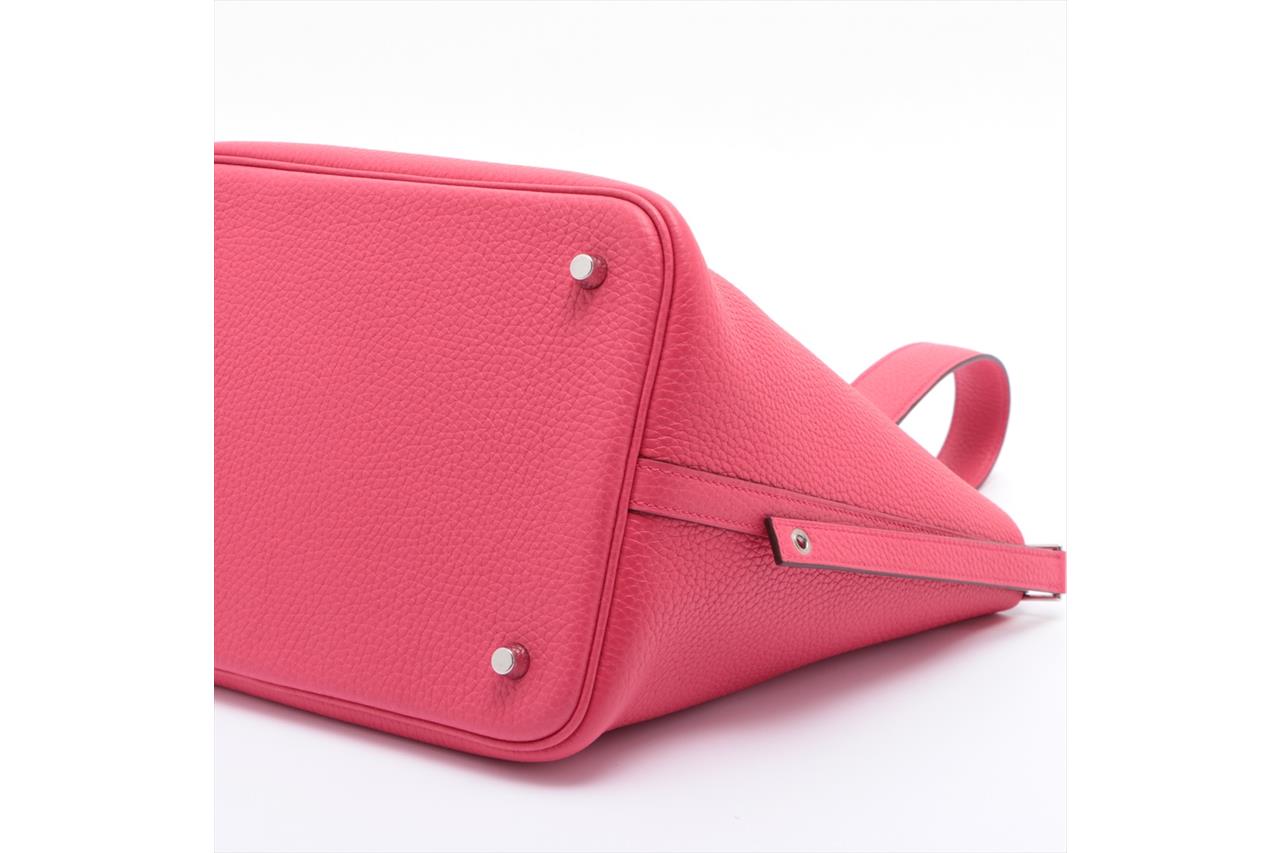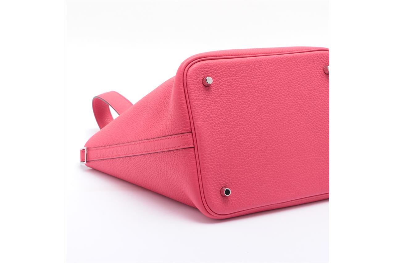 Hermes Picotin Lock MM in Rose Lipstick Taurillon Clemence Leather. Palladium hardware. Circa 2019. Approximate dimensions: 22cm (L) x 22cm (H) x 18cm (D). Made in France. Accompanied by Hermes box, papers, dust bag, keys and padlock. With Entrupy Certificate of Authenticity. (As New)