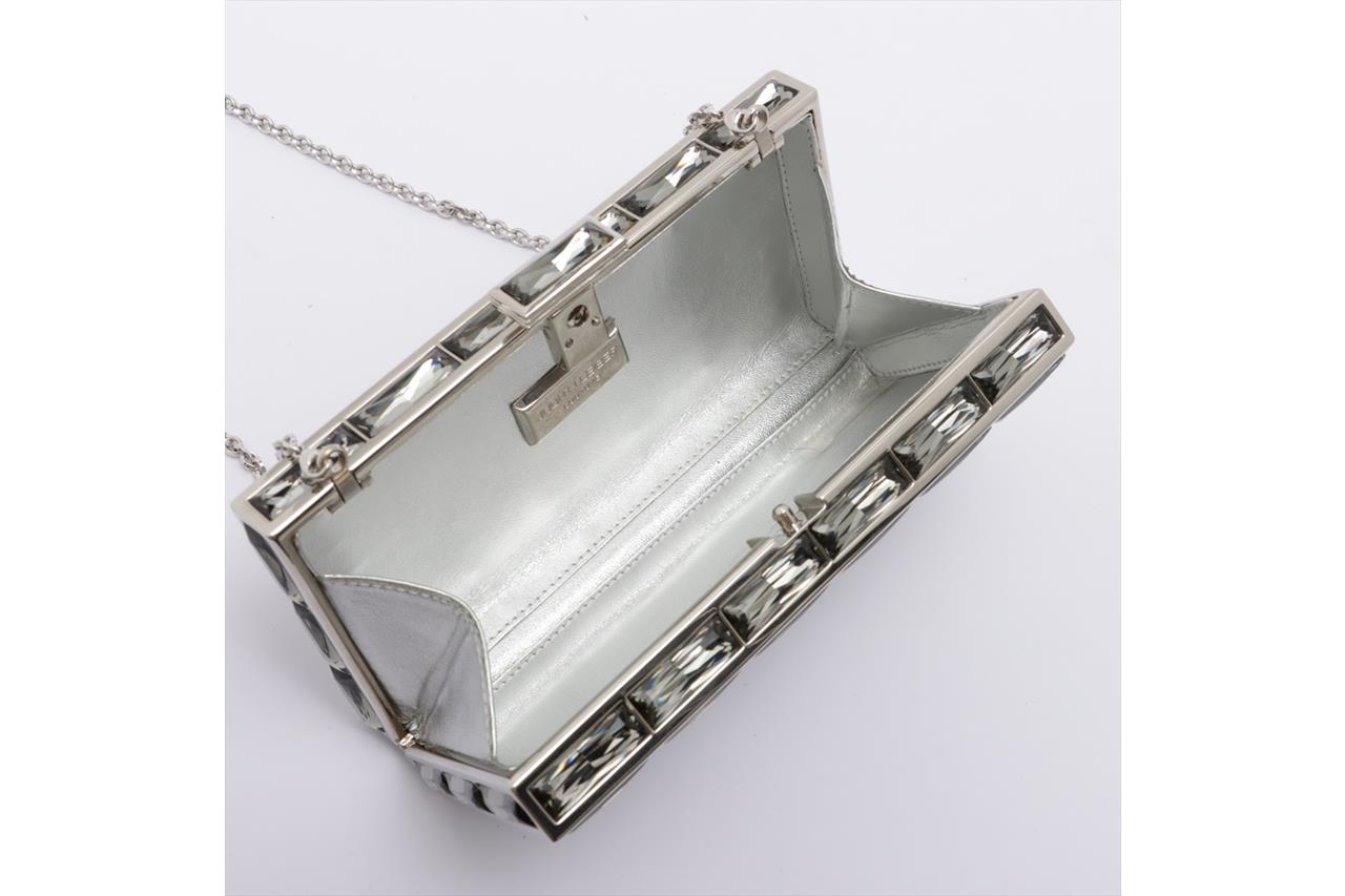 Judith Lieber New Goddess Baguette Crystal Clutch. Silver. Approximate dimensions: 16cm (L) x 8cm (H) x 3cm (D). Accompanied by Judith Lieber papers and dust bag. (Pre-owned).