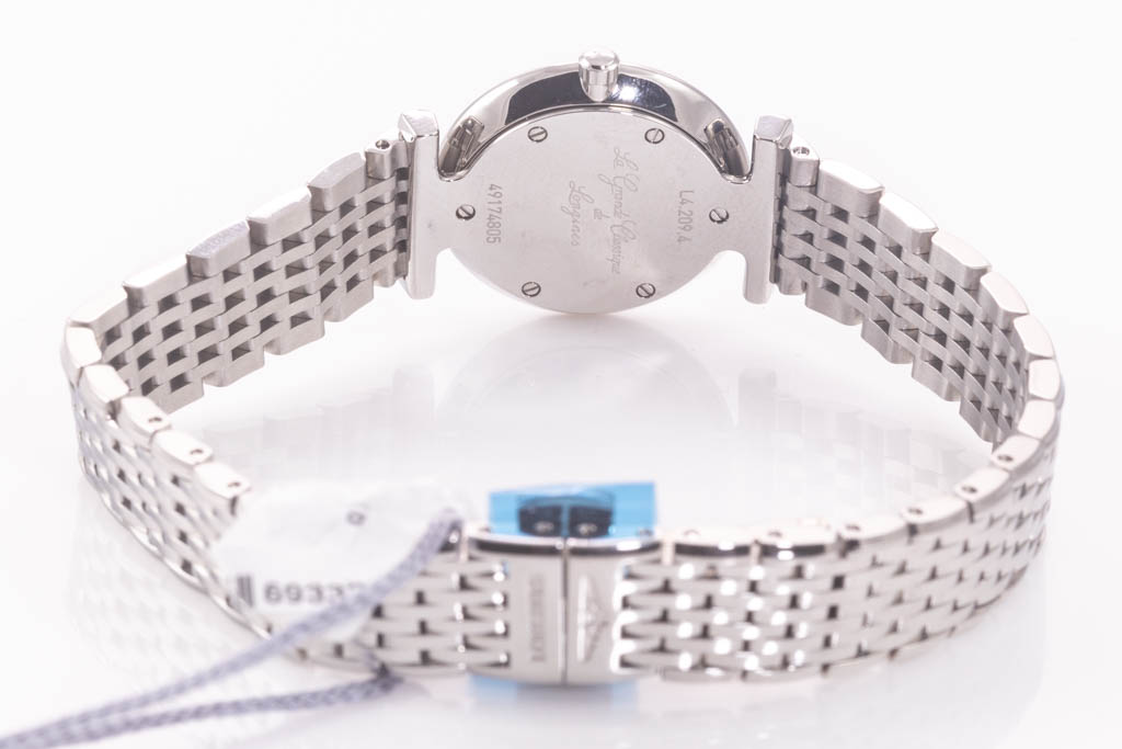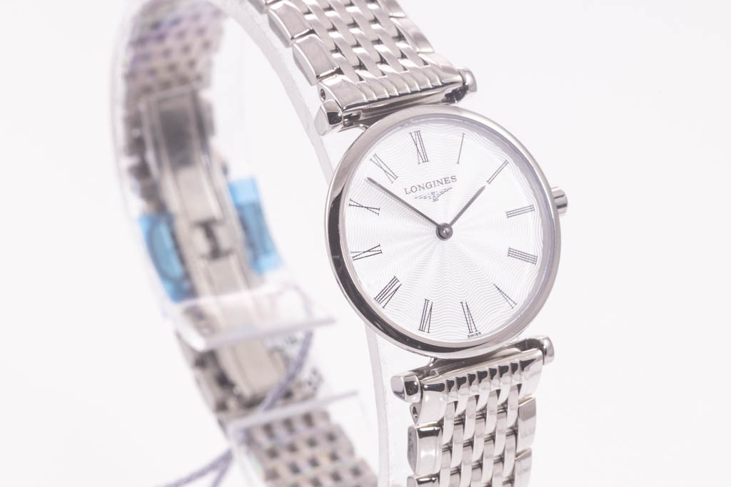La Grande Classique De Longines stainless steel quartz ladies watch. Silver dial, case diameter: 24mm, wrist size: 18cm, Swiss made. Ref# L42094716. With Longines stainless steel bracelet and clasp. With Longines International Warranty card and Longines box. Longines 2 year warranty applies. (As new, Note: minor scratches on case and bracelet due to being display stock)