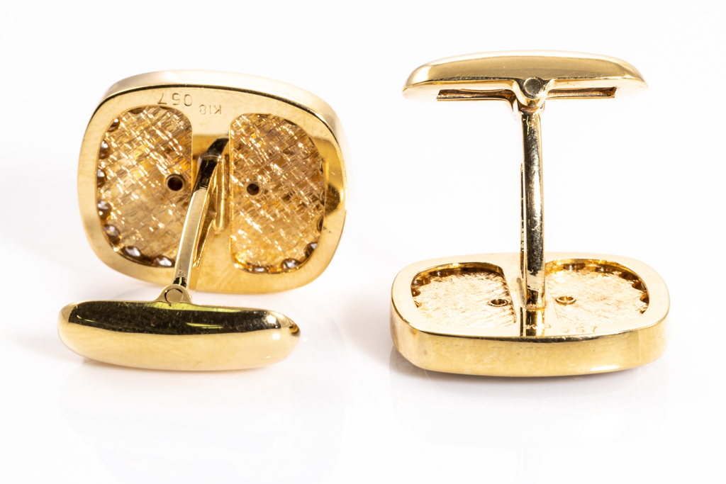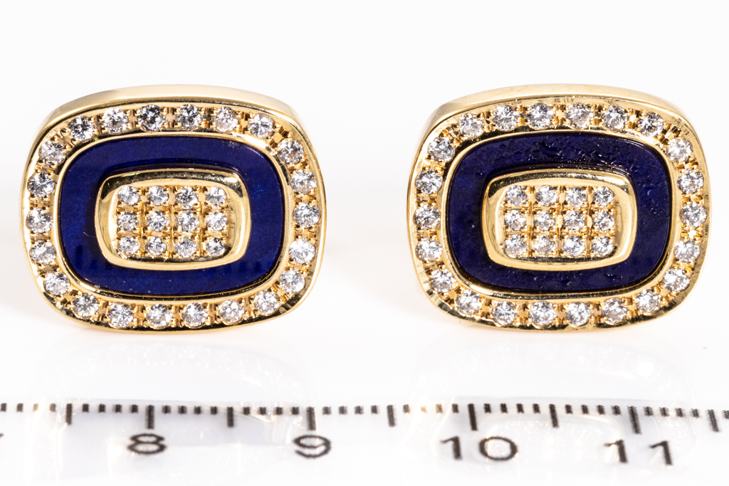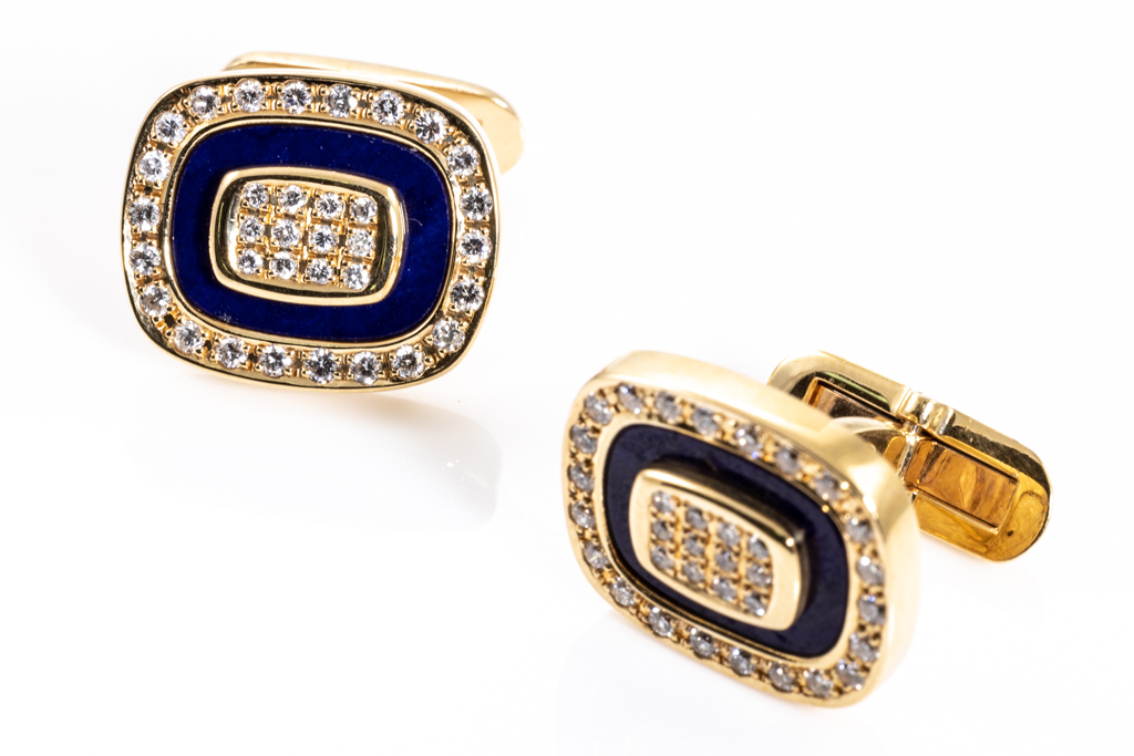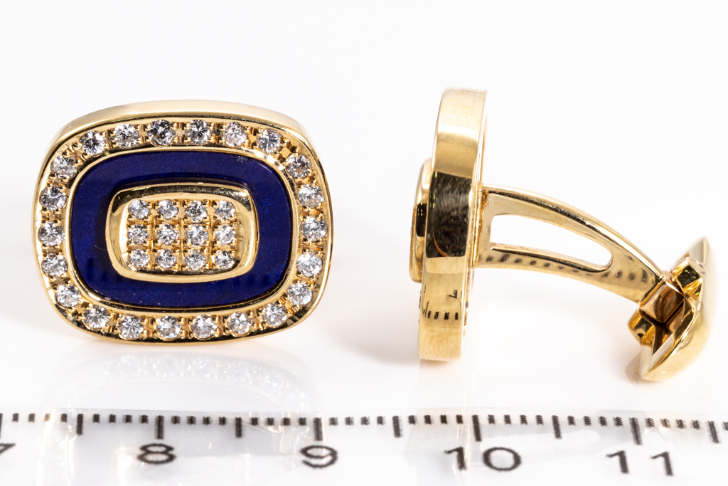 Lapis and Diamond cufflinks with round Diamonds totalling 1.14cts (Estimated grading: I-J SI-P1). 18ct yellow gold. Weight: 18.2g. (Pre-owned)