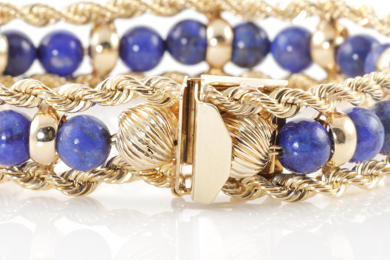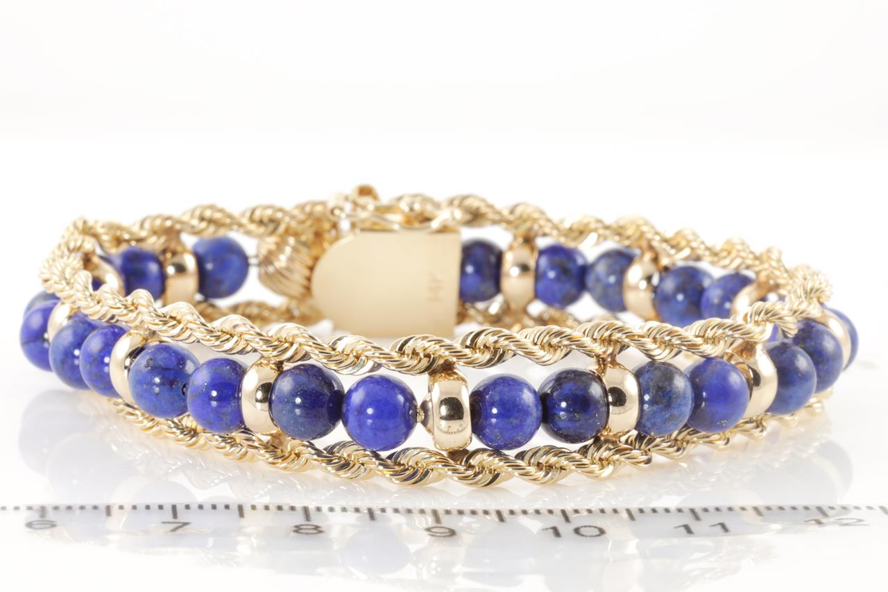 Bracelet with Lapis lazuli beads. 14ct yellow gold. Length: 19cm. Weight: 29.0g (Pre-owned)
