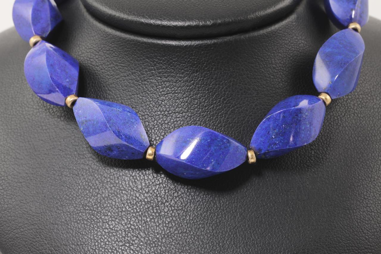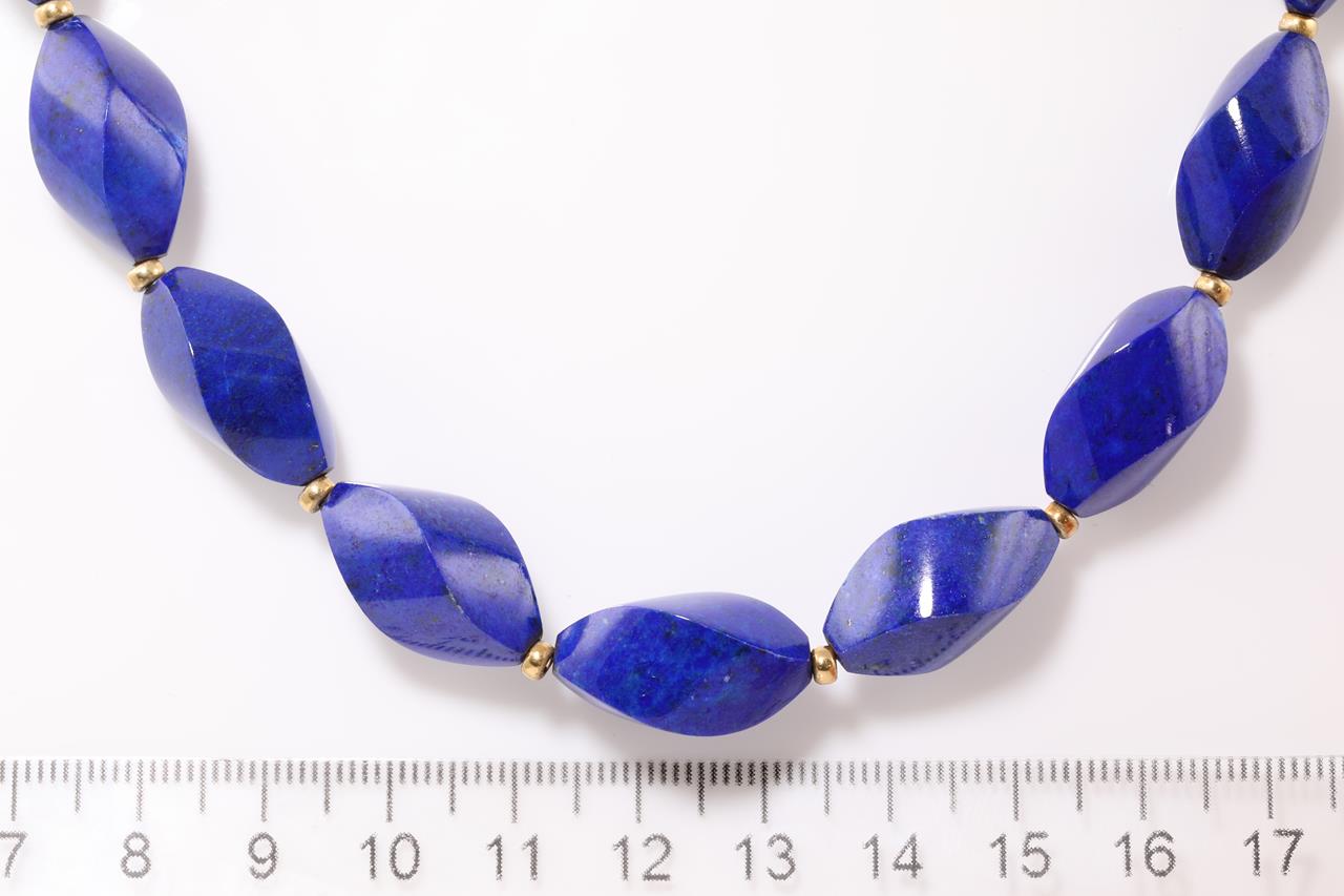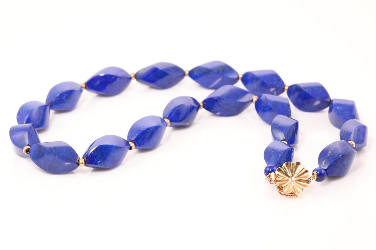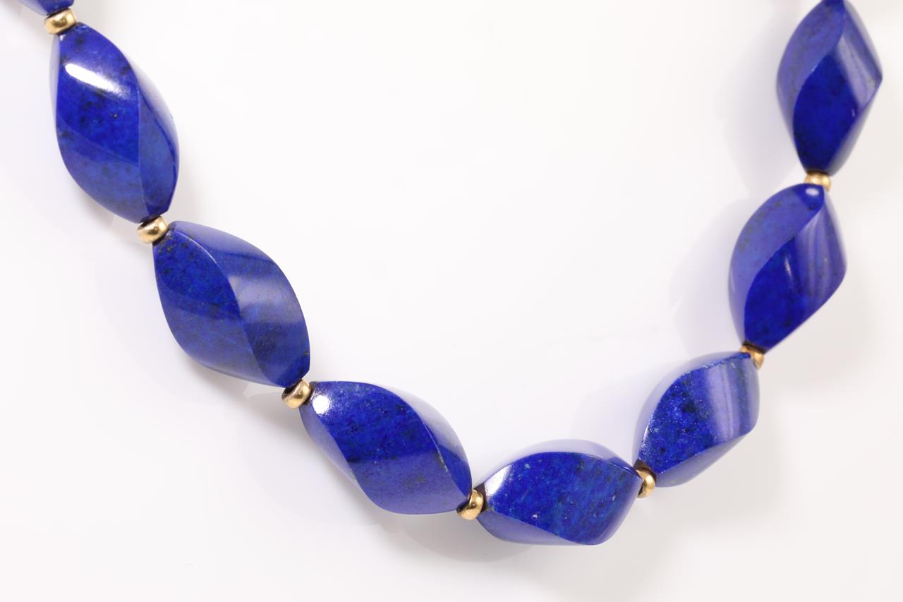 Lapis Lazuli necklace with Lapis Lazuli beads of 2cm x 1cm. 14ct yellow gold. Length: 44.5cm. Weight: 67.1g (Pre-owned)