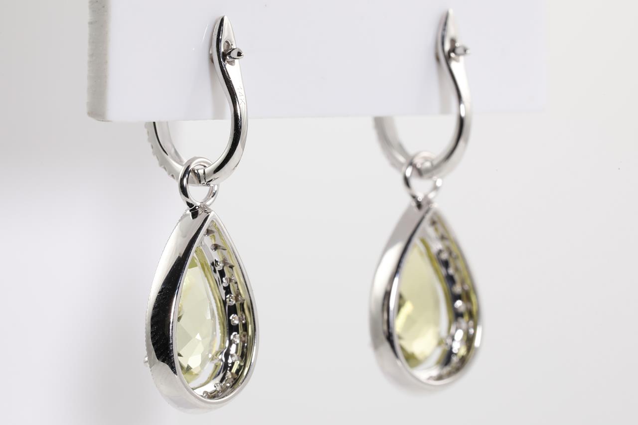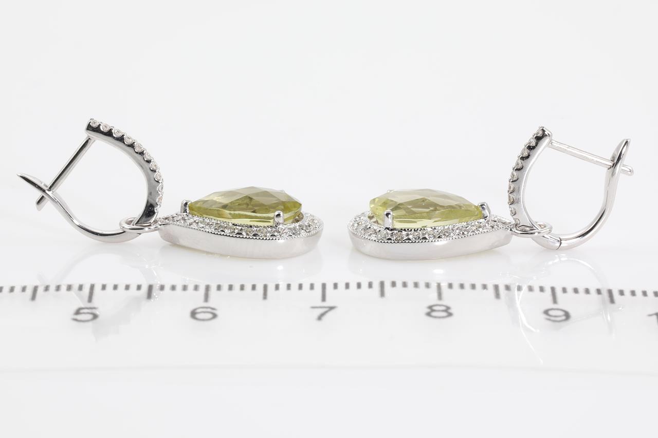 Lemon Quartz and Diamond earrings with pear shape Lemon Quartz totalling 3.31cts and Diamonds totalling 0.45cts (Estimated grading: H SI). 14ct white gold. Weight: 4.0g. (New)