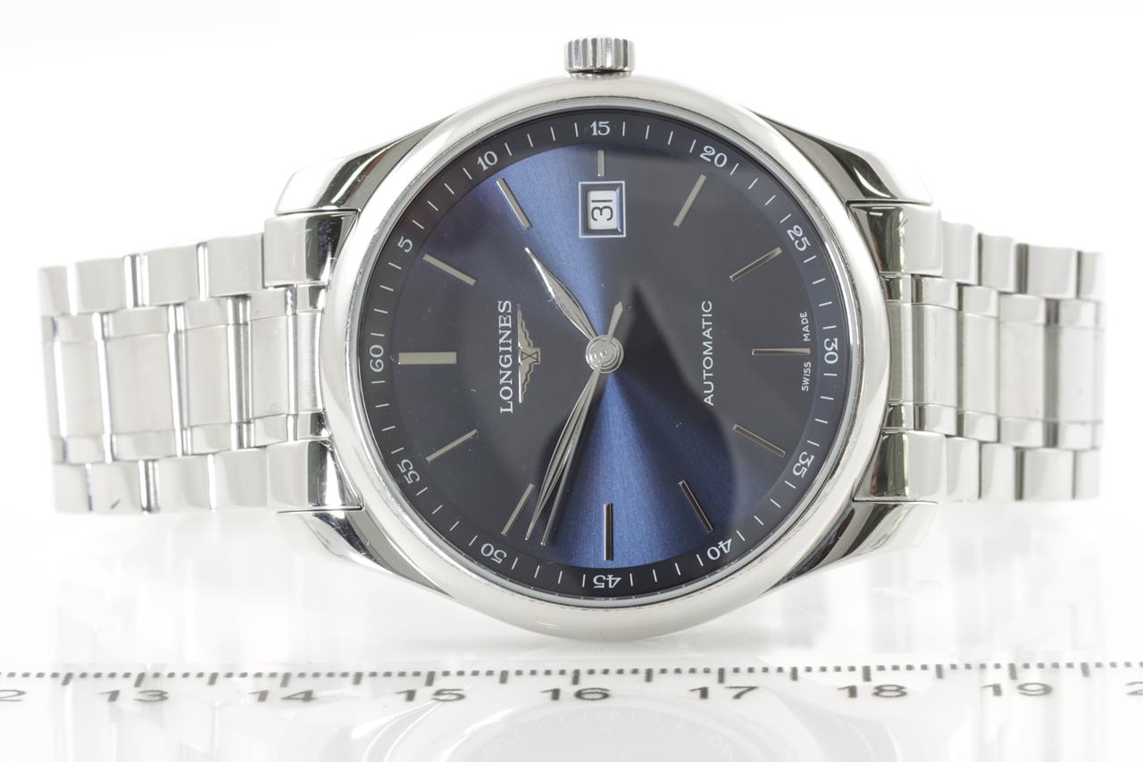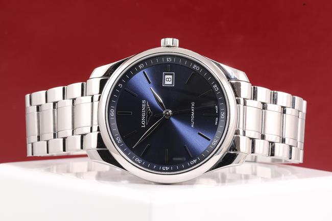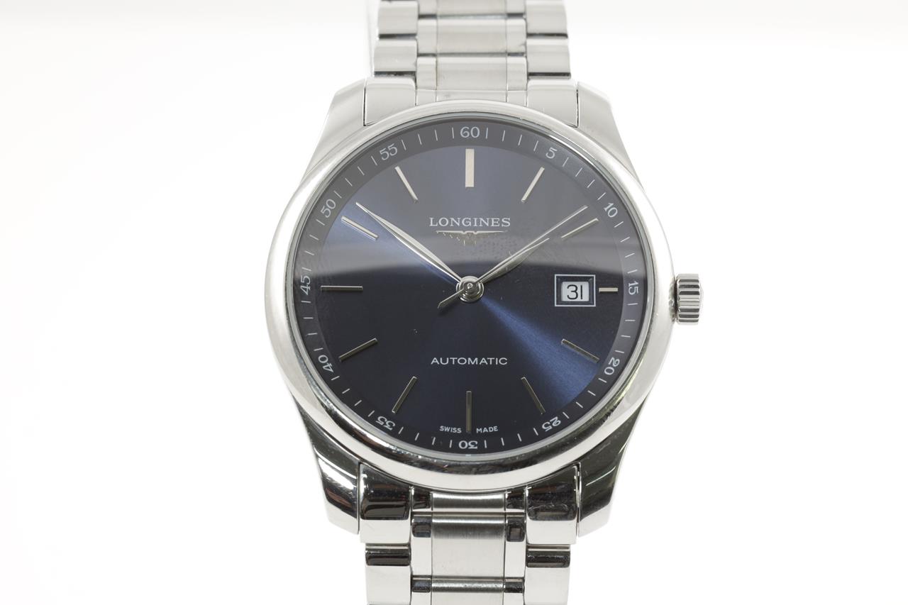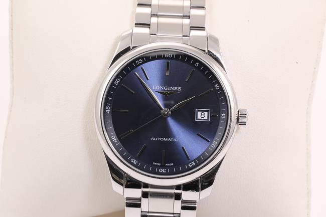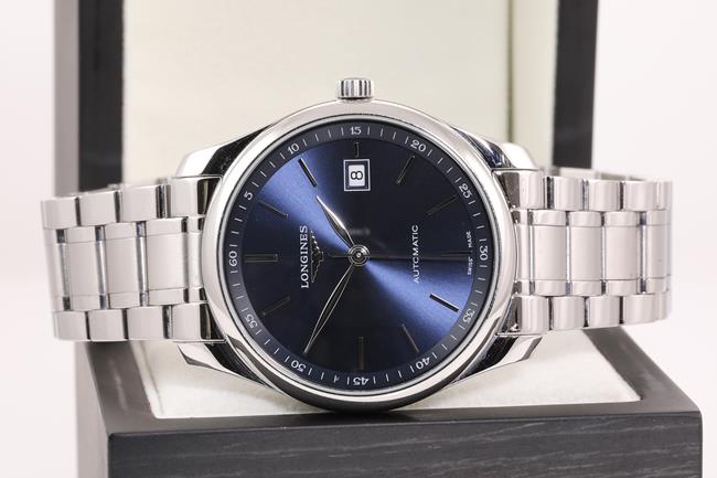 Longines Master Collection stainless steel automatic mens watch. Blue dial, date, case diameter: 40mm, wrist size: 21cm, Swiss made. Ref# L2.793.4.92.6. With Longines stainless steel bracelet and clasp. With certificate of authenticity, Longines international warranty card dated 11/6/2018 and Longines box. 3 month FSA warranty. (Pre-owned)