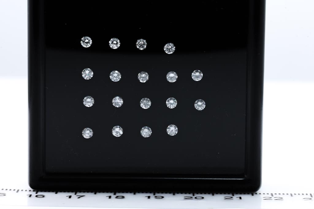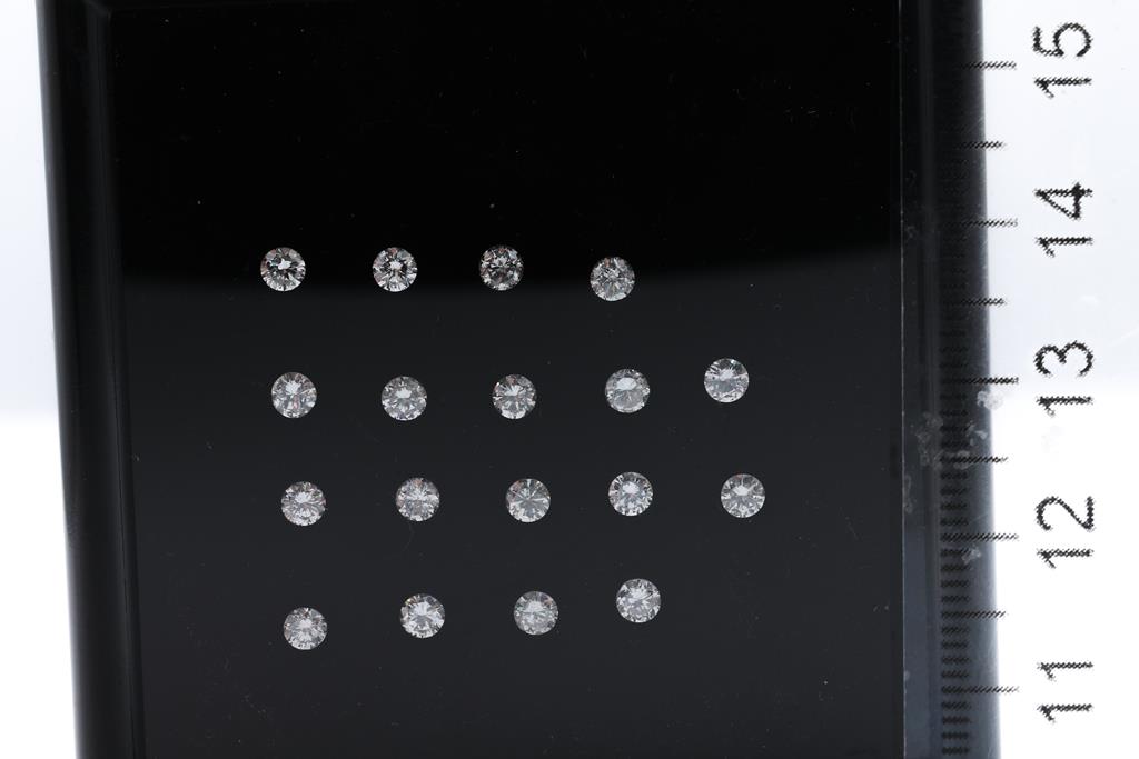 A loose parcel of 18 round brilliant cut Diamonds totalling 1.60cts (Estimated grading: H-J SI-P1; 2.75-2.8mm). (New)