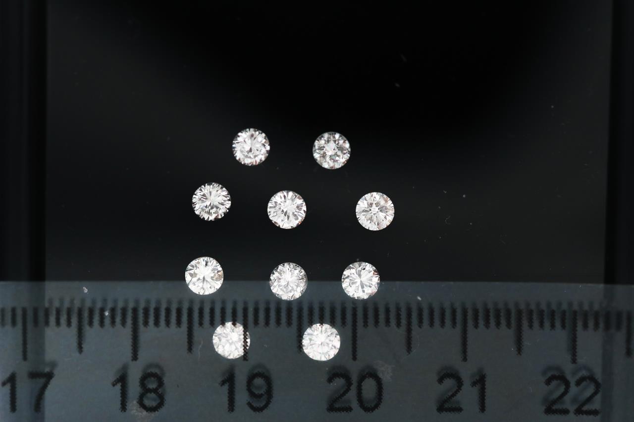 A loose parcel of 10 round brilliant cut Diamonds totalling 1.75cts (Estimated grading: H-J SI-P1; 3.3-3.5mm). (New)