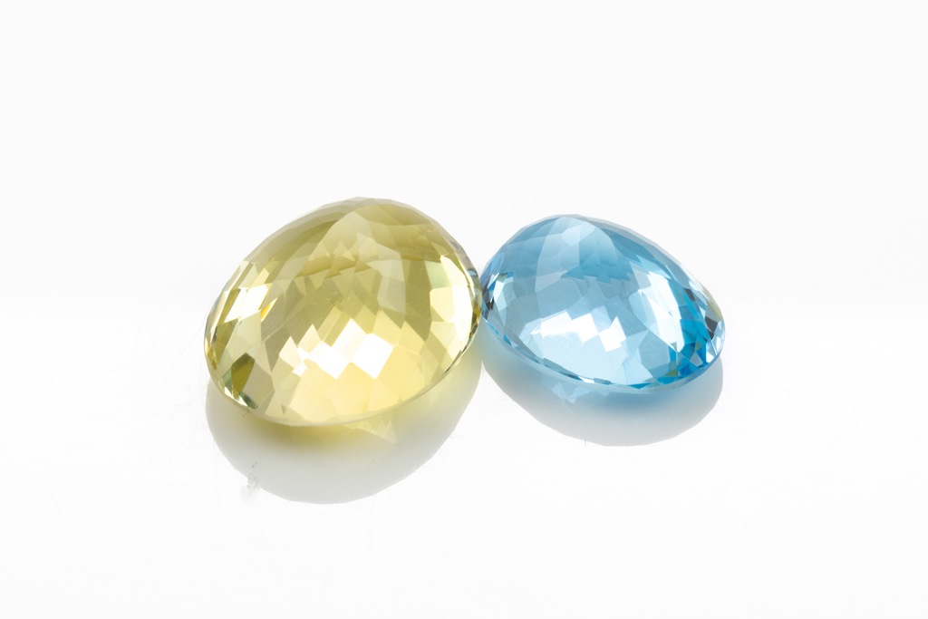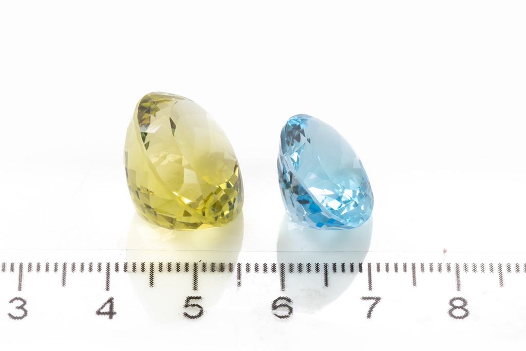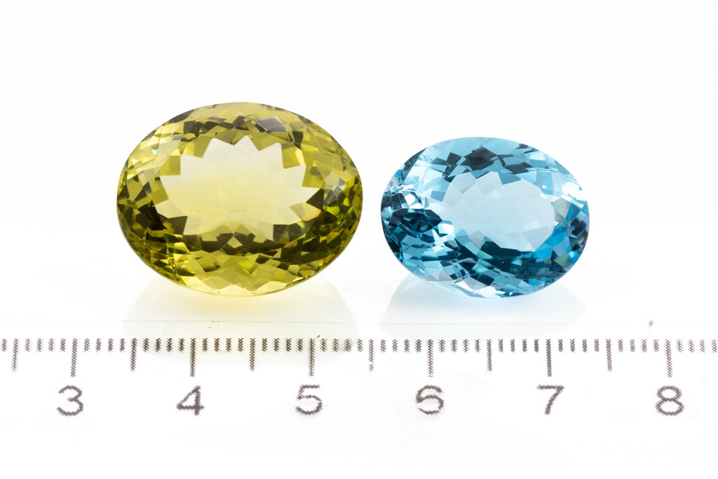 A loose oval shape Topaz of 16.95ct. Dimensions: 17 x 13 x 9mm. With a loose oval shape Lemon Quartz of 24.75ct. Dimensions: 21 x 17 x 12mm. (As New)