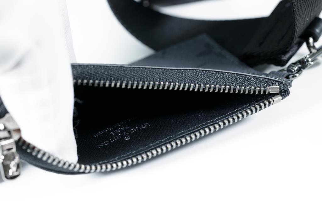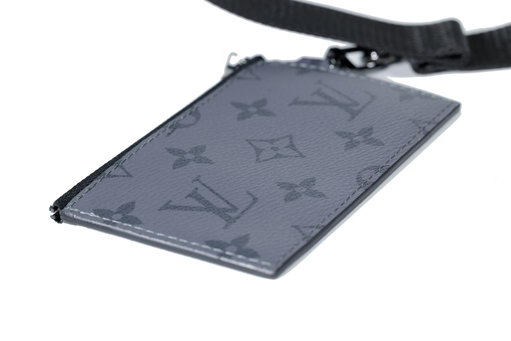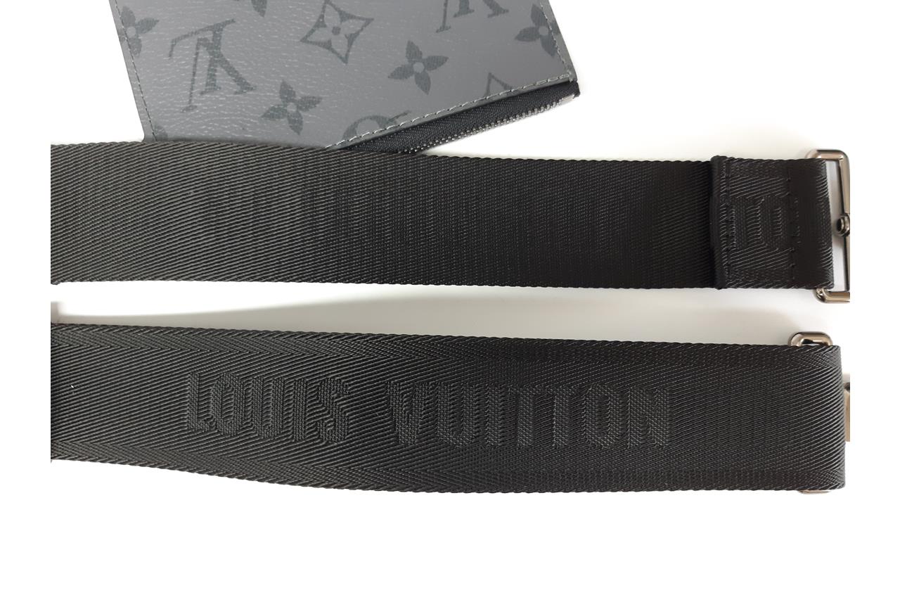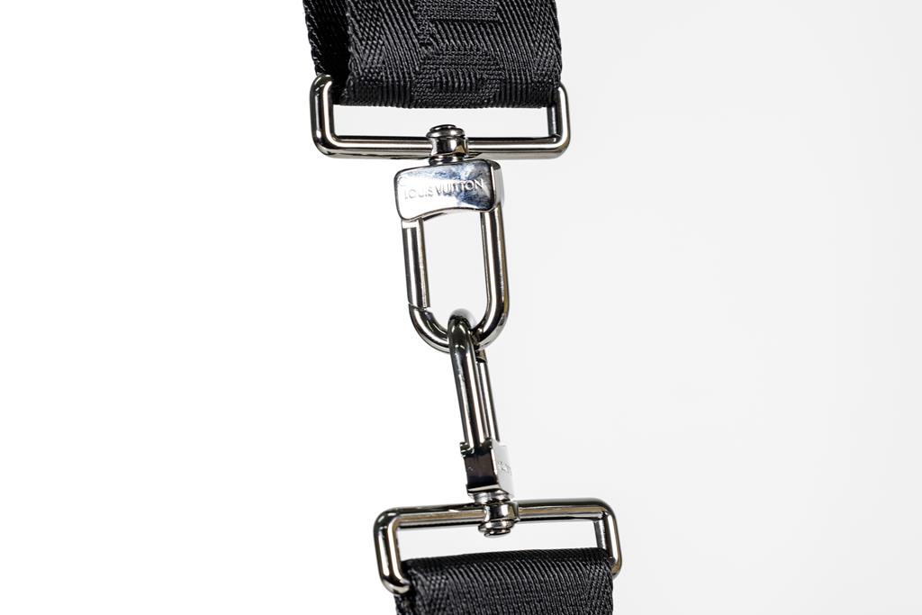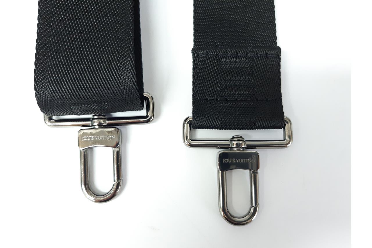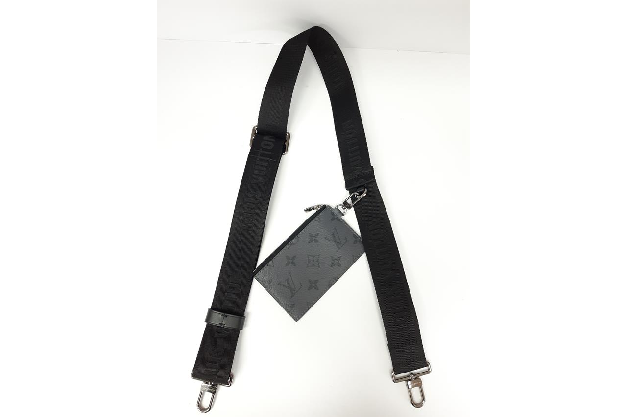 Louis Vuitton Jacquard strap in black, woven with the house signature, black-toned hardware, accompanied by a removable rectangular zip closure purse in black Monogram Eclipse Reverse coated canvas. Approximate dimensions: strap - 110cm(L) x 4cm(W) x 0.2cm(D), purse - 12.5cm(L) x 8cm(W) x 0.5cm(D). With Entrupy Certificate of Authenticity. (Pre-owned)