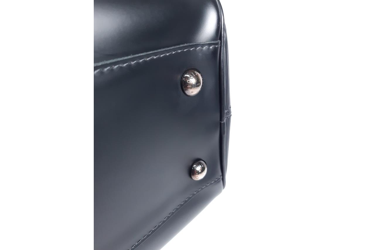 Louis Vuitton bowling Montaigne PM bag in black Epi leather. Featuring silver-tone hardware, dual leather rolled handles, zip closure at top. The top opens to a black canvas lining interior with patch pockets. Approximate dimensions: 33cm(W) x 20cm(H) x 18cm(D), 14.5cm handle drop. Accompanied by a leather clochette. Note: padlock and keys NOT included. With Entrupy Certificate of Authenticity. (Pre-owned)