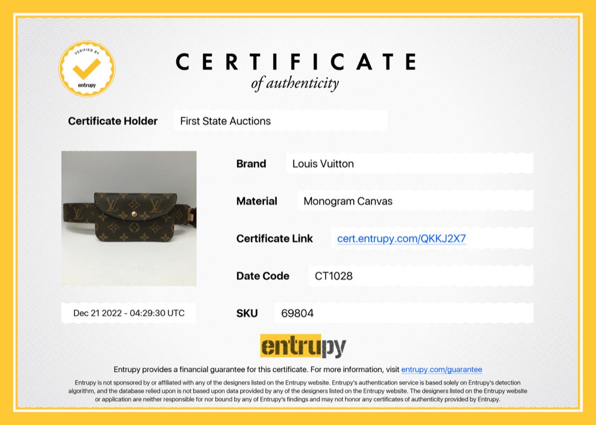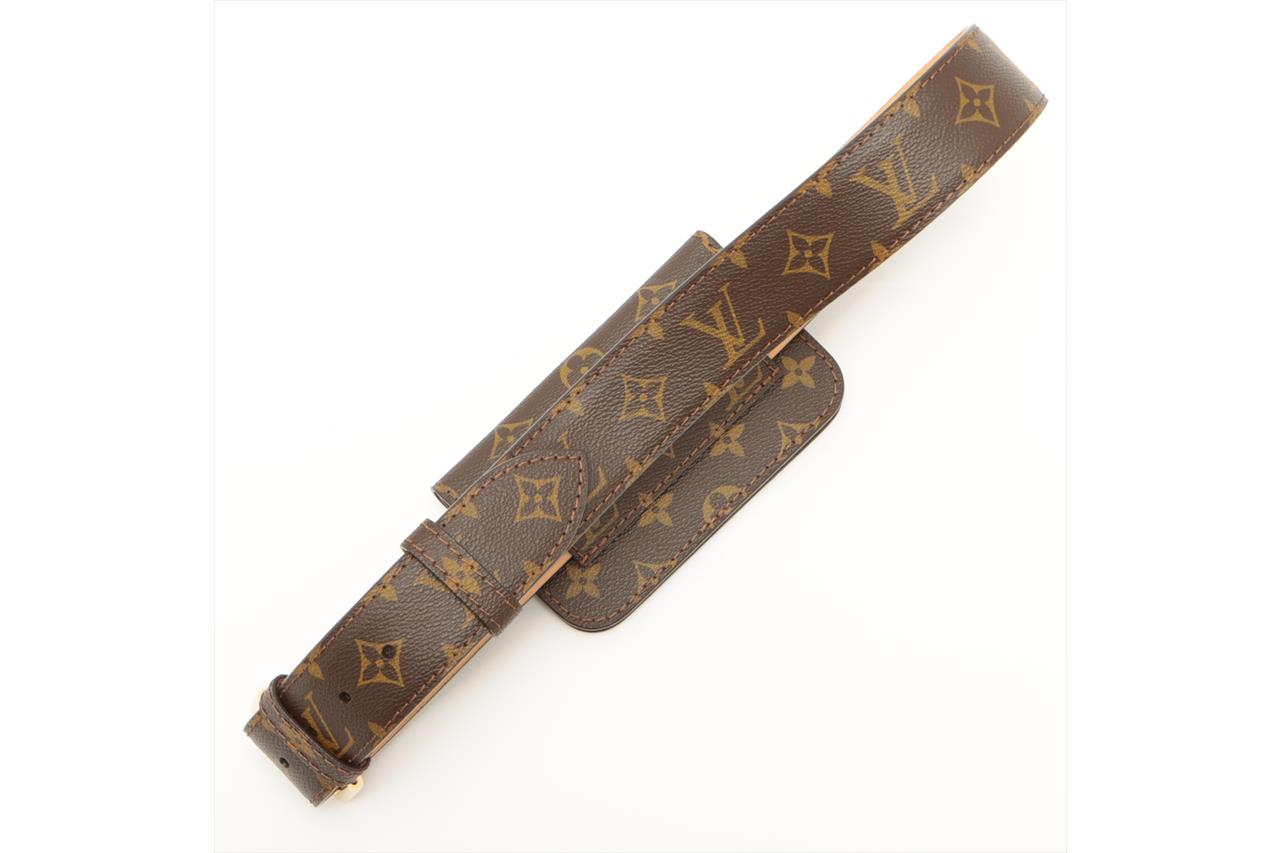 Louis Vuitton Ceinture Pochette Belt Bag in Monogram Coated Canvas. Featuring gold-tone hardware and a fold over top with snap fastening. Approximate dimensions: 15cm (L) x 9cm (H) x 1.5cm (D), and detachable and adjustable strap with a 105cm circumference, 95cm minimum length, and 3cm width. Accompanied by Louis Vuitton dust bag and box. With Entrupy Certificate of Authenticity. (Pre-owned)